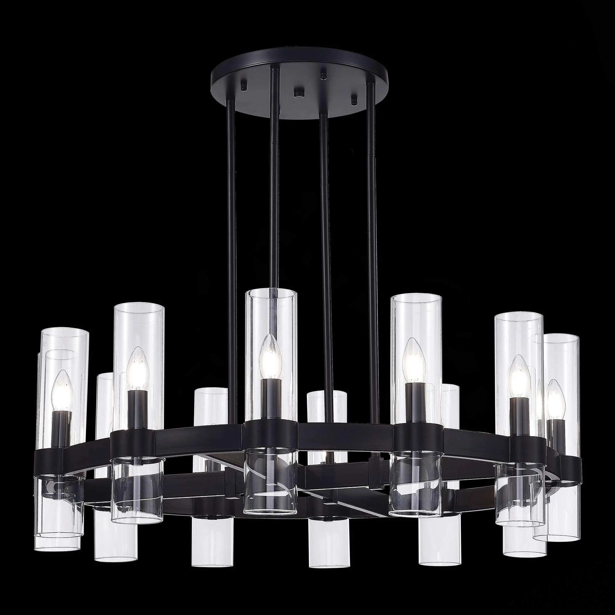 Металл и стекло полноправно взаимодействуют в дизайне коллекции OLVERA. Трубочки из хрустального стекла и металла опоясаны лентой, состоящей из нескольких элементов. Крепление на тросы делает конструкцию визуально более легкой, а дополнительное кольцо помогает сбалансировать конструкцию при подвешивании. Широкий размерный ряд позволяет использовать светильники в разных помещениях и для разных целей.