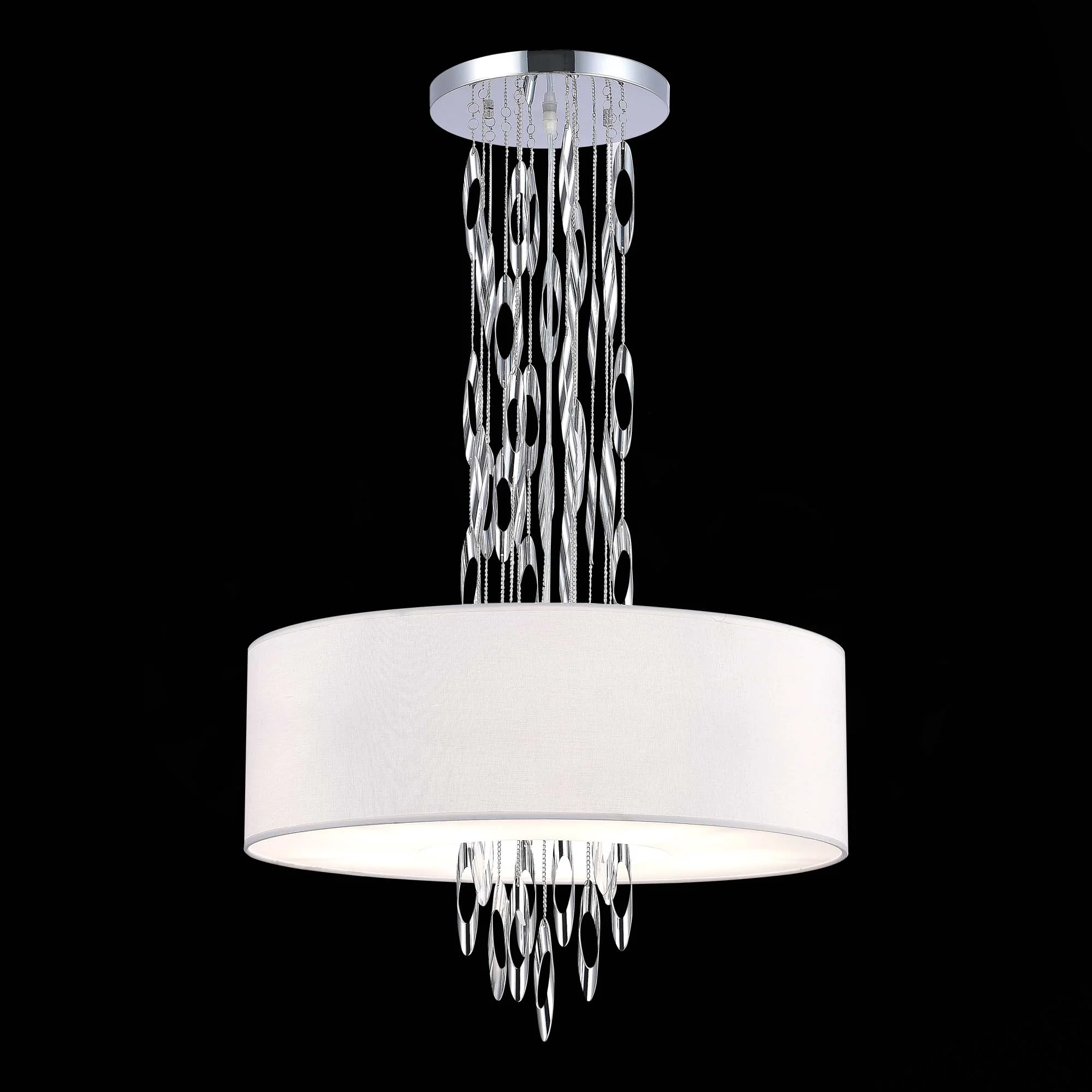 Светильники Nettuno привлекают изысканным и в то же время современным дизайном. Цилиндрический абажур из белой ткани как будто парит в воздухе вокруг дождика из сверкающих хромированных подвесок. Акриловый рассеиватель делает свет мягким и ненавязчивым. Коллекция состоит из потолочного и подвесного светильников, бра и настольной лампы. Светильники прекрасно дополнят как современный, так и классический интерьер.