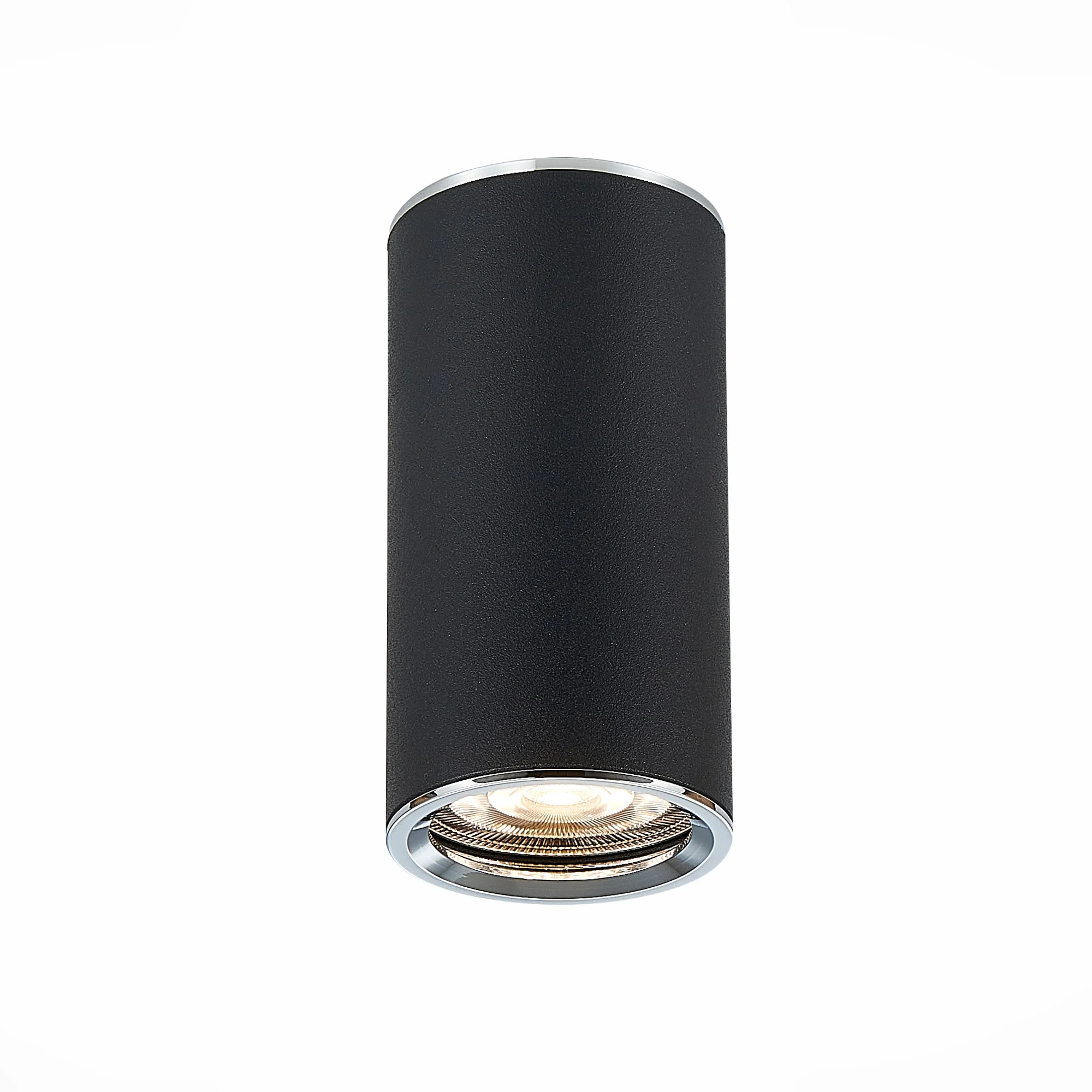 Накладные потолочные светильники цилиндрической формы с цоколем GU10. Представлены в черном и белом цветах, декорированы хромированными кольцами у основания и у источника света..