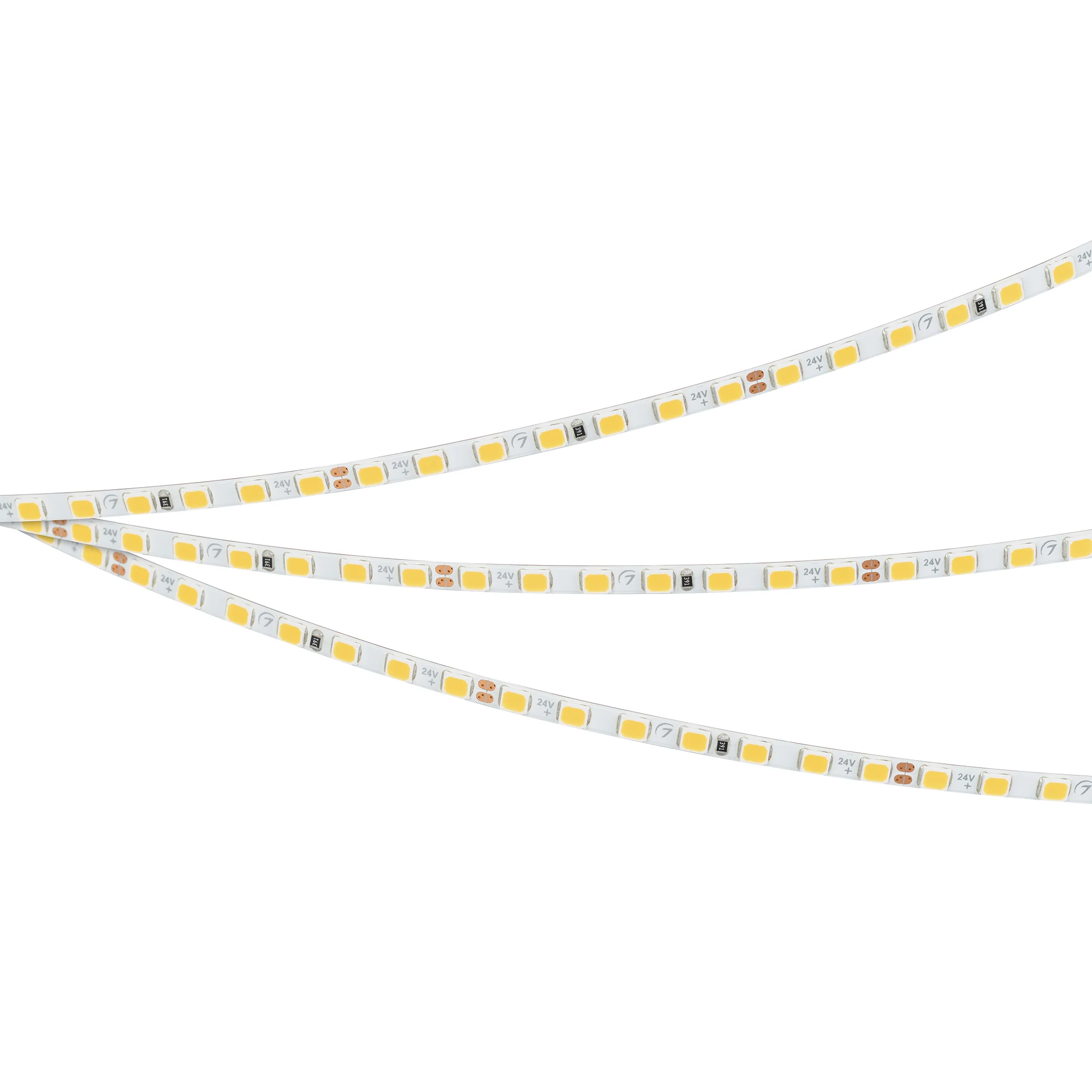 Светодиодная лента UL серии A168. Светодиоды SMD 2835, 168 шт/м, белая плата шириной 10 мм, скотч 3M. Цвет ТЕПЛЫЙ 2700K, индекс цветопередачи CRI>90, угол 120°. Питание 24 В, мощность 17 Вт/м (85 Вт на 5 м). Размеры 5000x10x1.5 мм. Мин. отрезок 41.67 мм, 7 светодиодов. Цена за 1 м. Кратность заказа поставщику: 5 м.