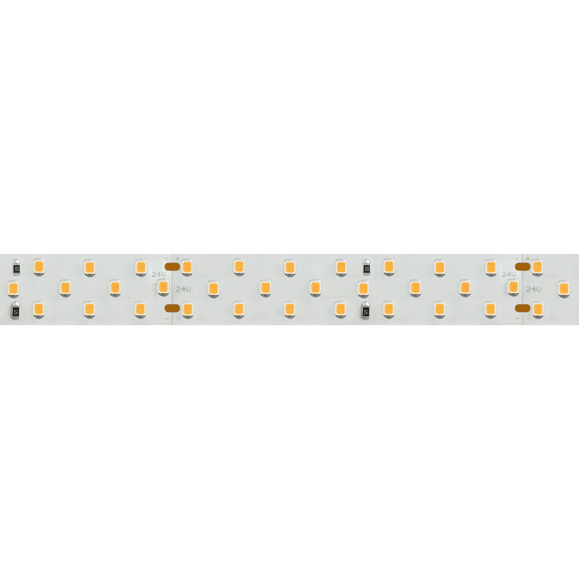 Светодиодная широкая лента RT серии A252. Светодиоды SMD 2835, 252 шт/м, белая плата шириной 19 мм, скотч 3М. Цвет ТЕПЛЫЙ 2700K, индекс цветопередачи CRI>85, угол 120°. Питание 24 В, мощность 28.8 Вт/м (144 Вт на 5 м). Размеры 5000х19х1.5 мм. Мин. отрезок 83.33 мм, 21 светодиод. Цена за 1 м. Кратность заказа поставщику: 5 м.