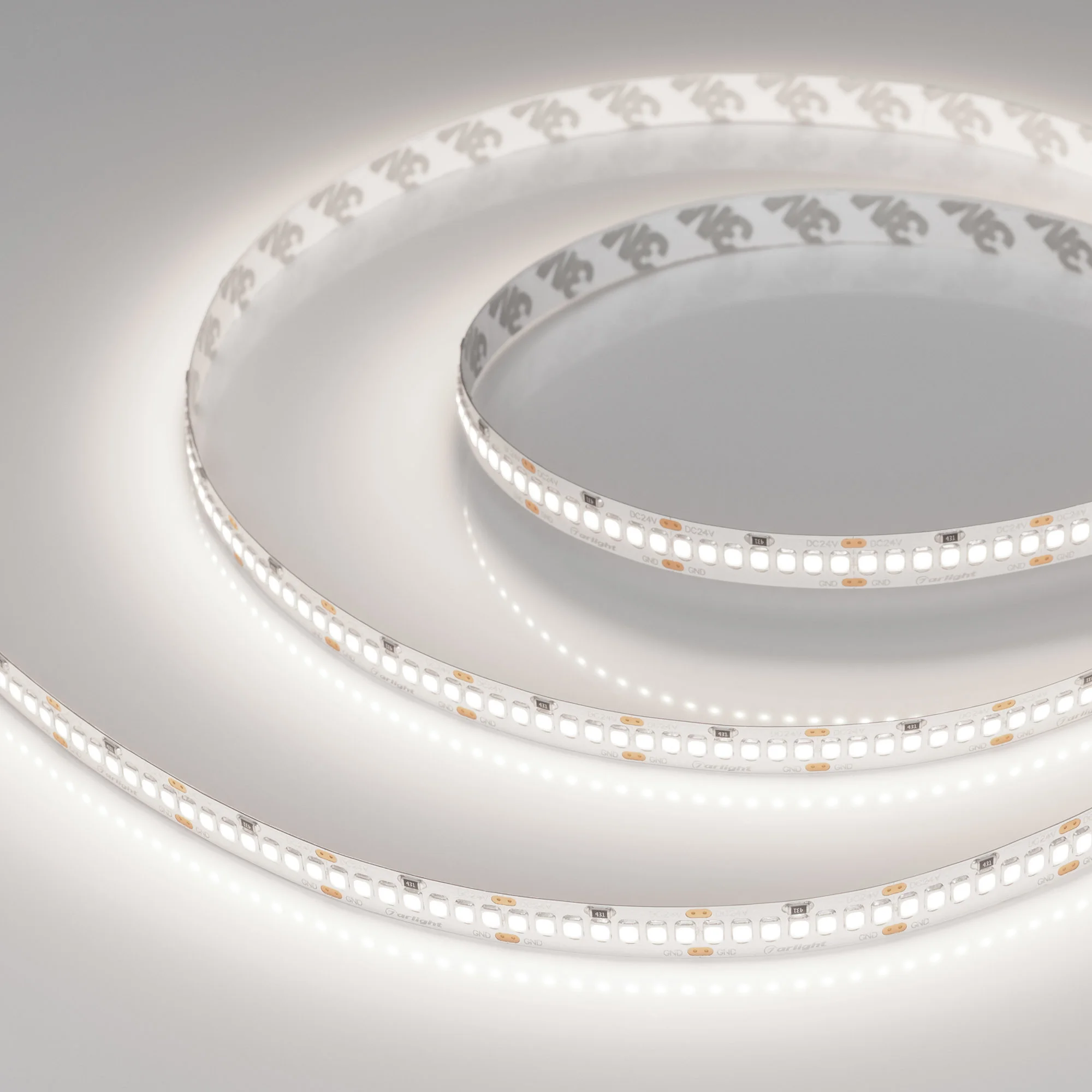 Светодиодная узкая лента MICROLED серии M120. Светодиоды SMD 2216, 120 шт/м, белая плата шириной 4 мм, скотч 3M. Цвет ДНЕВНОЙ 5000K, индекс цветопередачи CRI>90, угол 120°. Питание 24 В, мощность 5.4 Вт/м (27 Вт на 5 м). Размеры 5000х4х1.2 мм. Мин. отрезок 50 мм, 6 светодиодов. Цена за 1 м. Кратность заказа поставщику: 5 м.