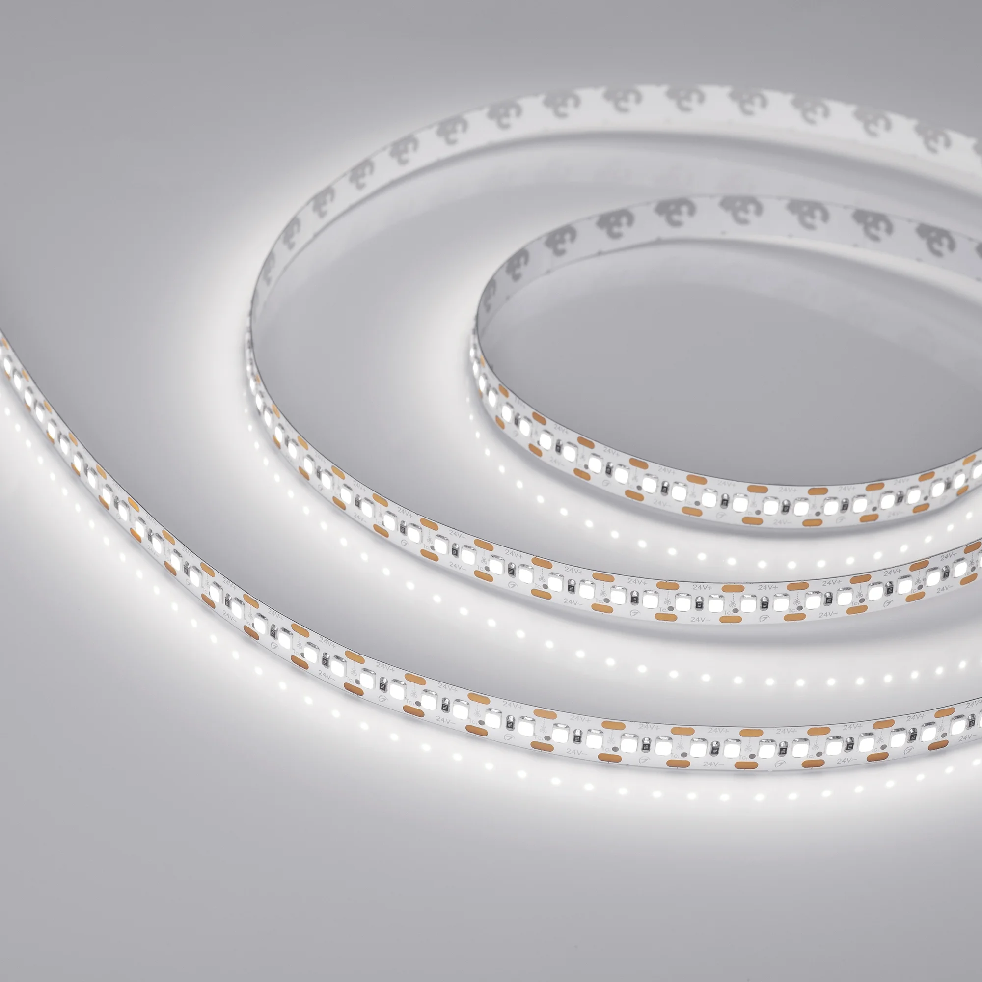 Светодиодная лента RT серии A180. Светодиоды SMD 3528, 180 шт/м, белая плата шириной 8 мм, скотч 3M. Цвет ДНЕВНОЙ 5000K, индекс цветопередачи CRI>90, угол 120°. Питание 24 В, мощность 14.4 Вт/м (72 Вт на 5 м). Размеры 5000x8x2 мм. Мин. отрезок 33.33 мм, 6 светодиодов. Цена за 1 м. Кратность заказа поставщику: 5 м.