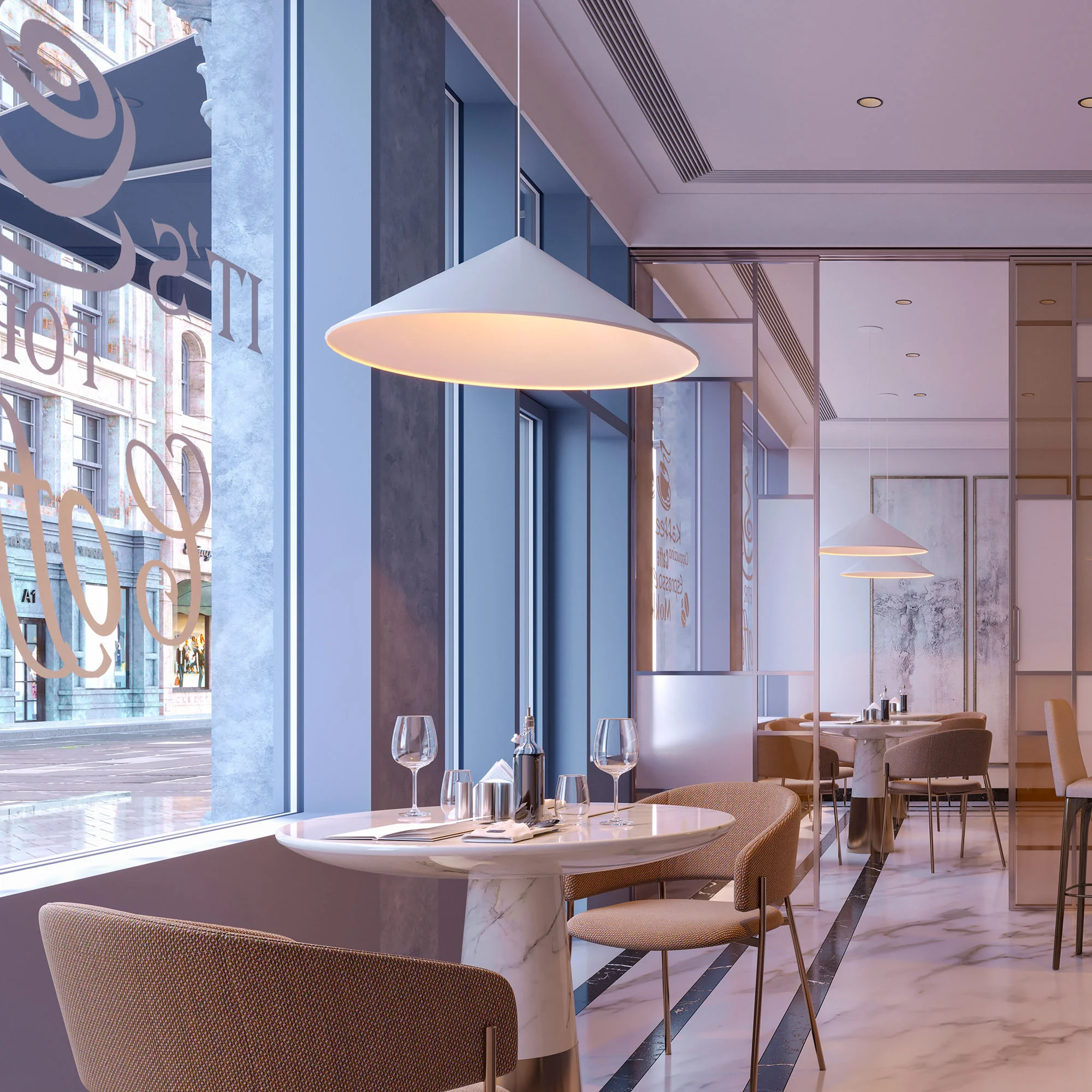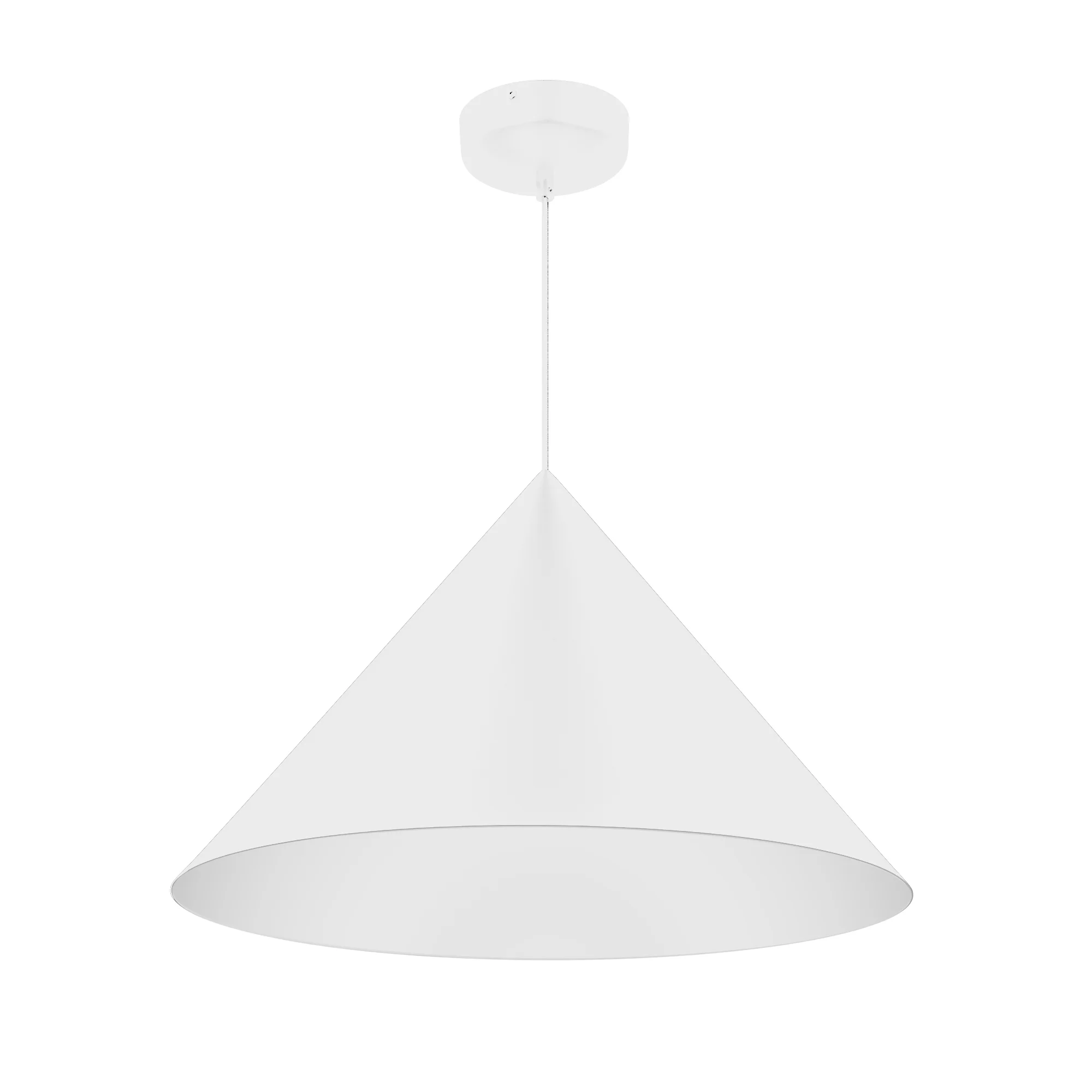 Подвесной светильник. Мощность 14 Вт, св. поток 1200 лм, 74 лм/Вт, тёплый 2700K, CRI>92, угол 36°, напряжение питания 230 В. Белый корпус из алюминия в форме конуса с белой внутренней поверхностью, линза-рассеиватель из PMMA, степень защиты IP20. Размер: диаметр 550 мм, высота 340 мм. Монтаж подвесной, длина подвеса 2000 мм, регулируемая. В комплекте 2 вида […]