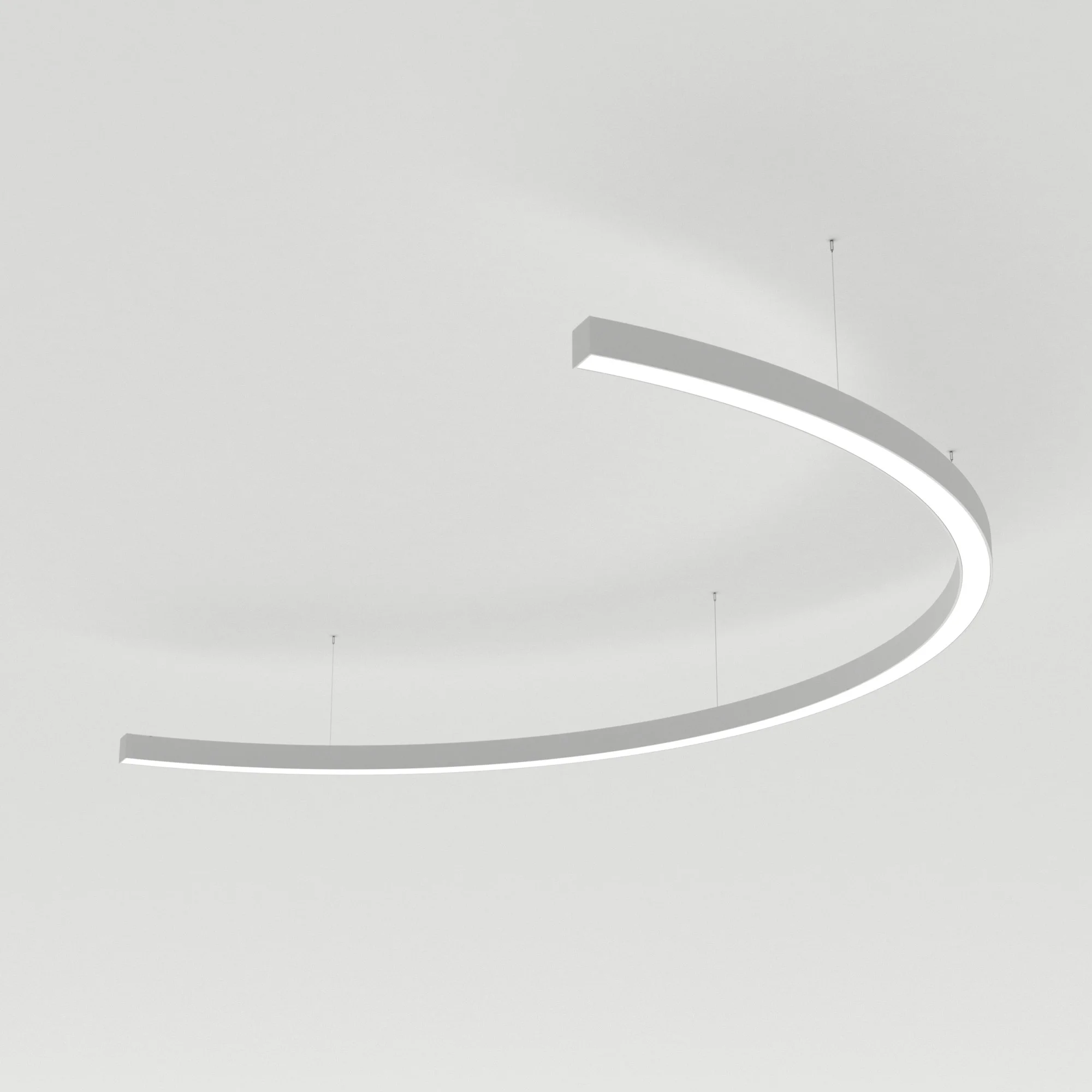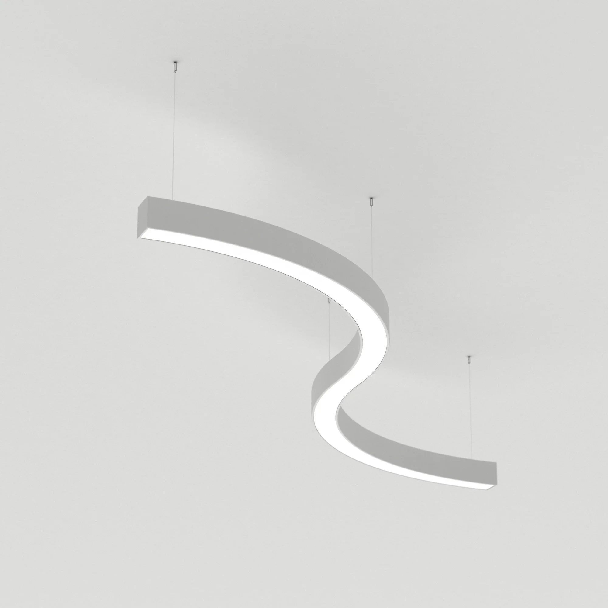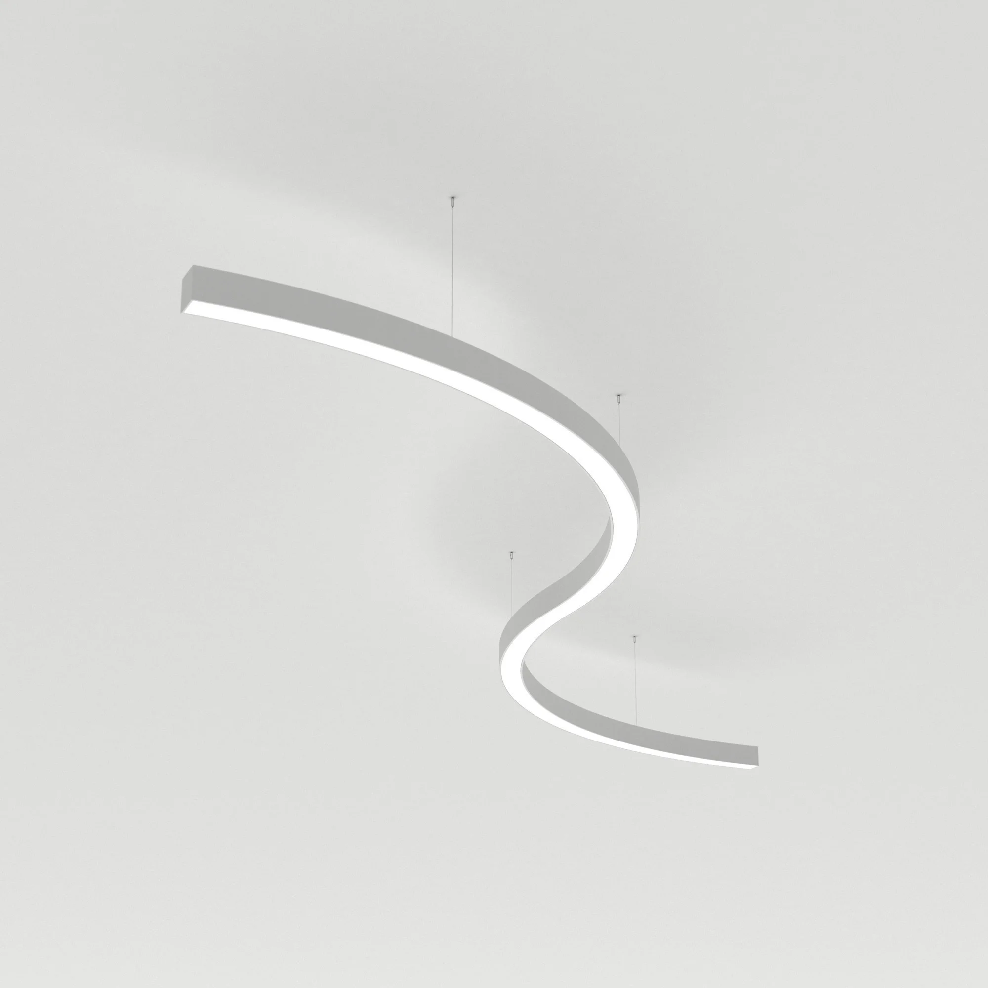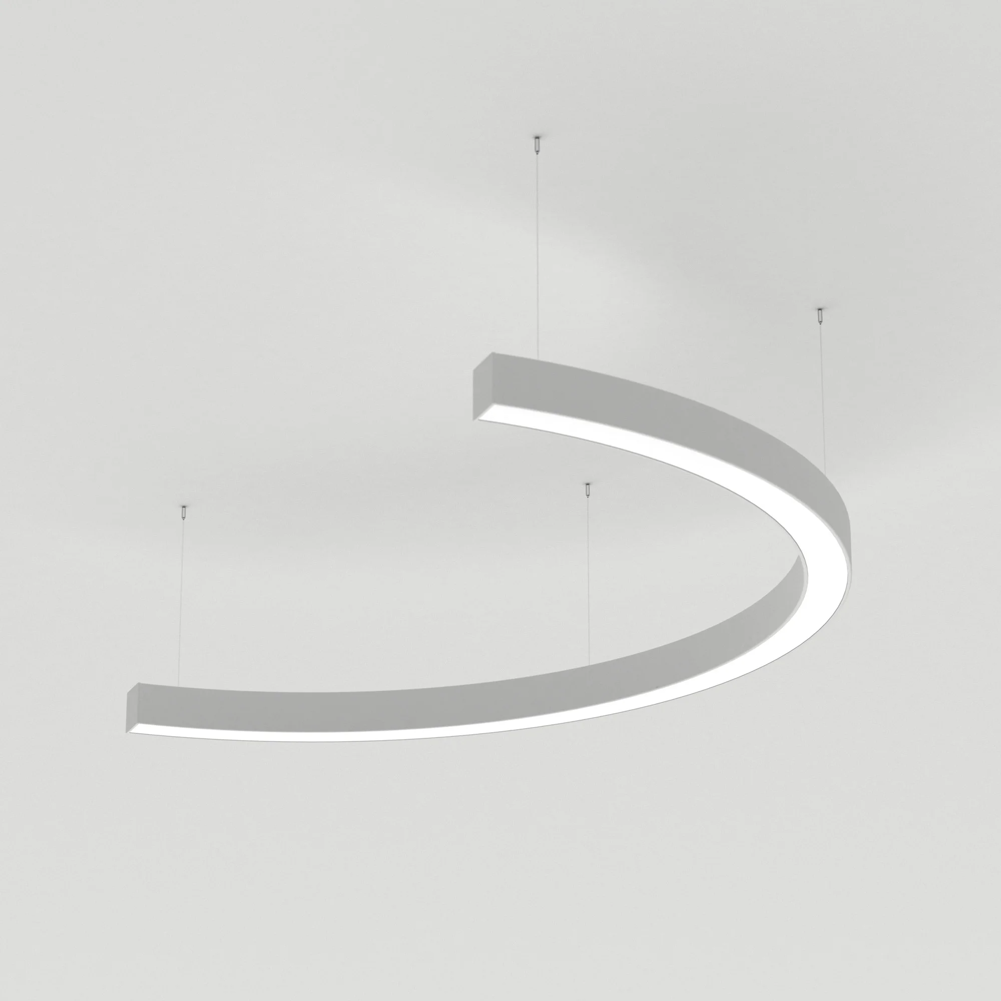 Светильник S-образный из профиля SL-ARC-3535-D1500-A90 WHITE, свечение вниз, цвет Тёплый 3000 K.