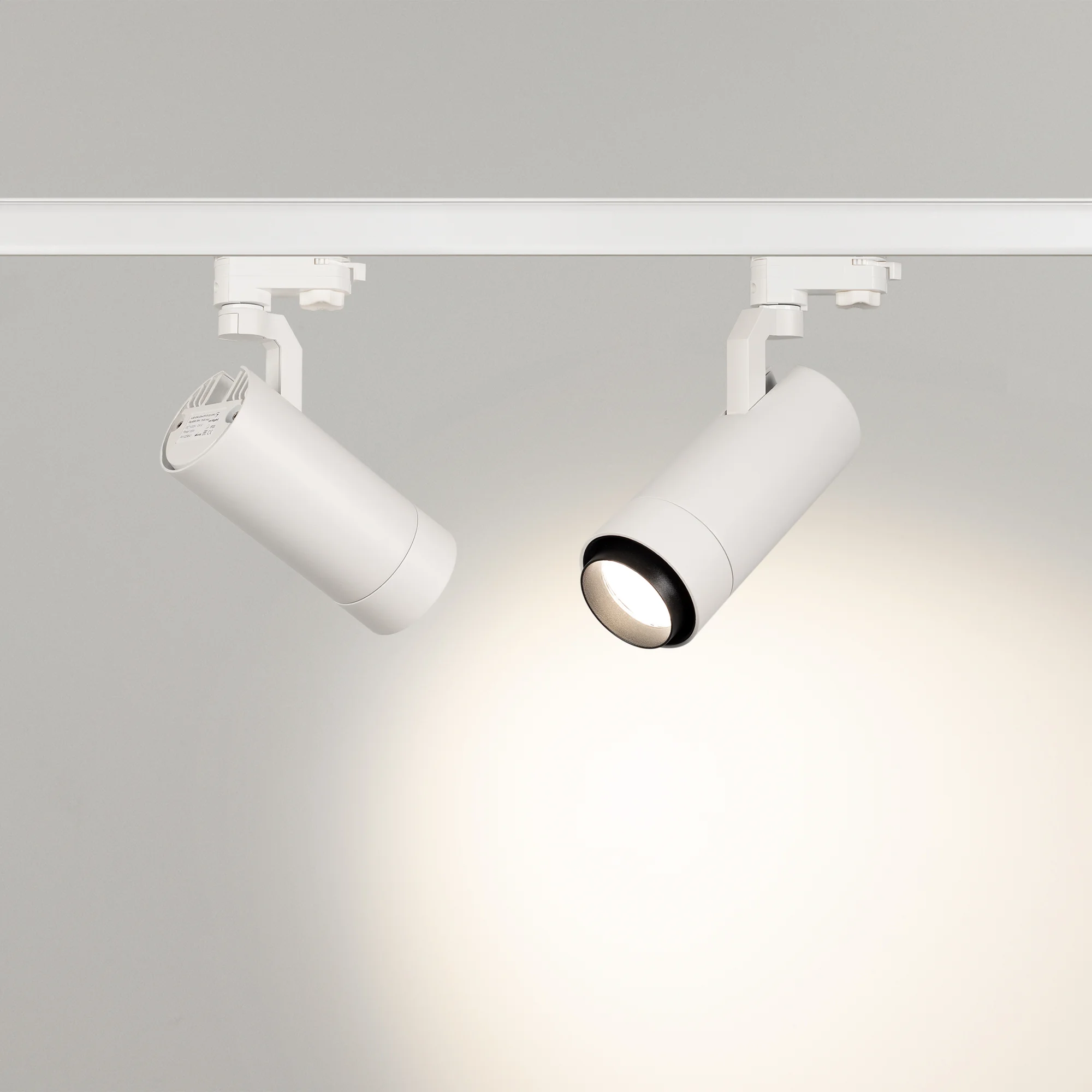 Светильник для треков/шин 4 провода, 30Вт. Цвет свечения ДНЕВНОЙ 4000K, световой поток 2700лм, регулируемый угол 20-60°, CRI>90. Корпус круглый, металл, цвет белый, IP20. Размеры DxL Ø80×181мм. Входное напряжение AC220-240V, мощность 30Вт. Драйвер встроенный (30-43V, 720mA).