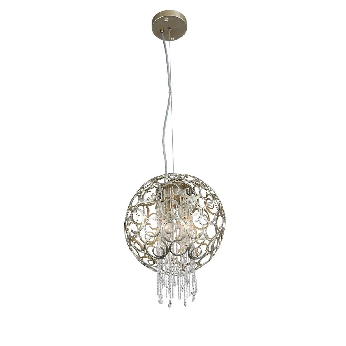 Коллекция Dolcima привлекает внимание неординарным дизайном, она добавит восточные нотки в современный интерьер или подчеркнет изысканность интерьера, выполненного в восточном стиле. Светильники цвета шампань. В металлические цепочки вплетены прозрачные хрусталики. В светильниках используются лампы накаливания с цоколем E14 и максимальной мощностью 40W. Высота подвесных светильников регулируется путем укорачивания тросиков.