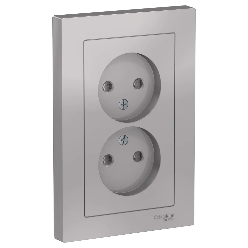 Systeme Electric AtlasDesign Алюминий Розетка б/з двойная, со шторками,16А, в сборе