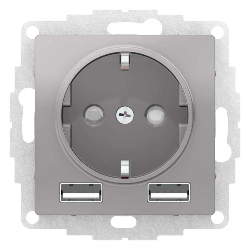 Systeme Electric AtlasDesign Алюминий SO + USB Розетка A+A, 5В/2,4А, 2х5В/1,2А, механизм
