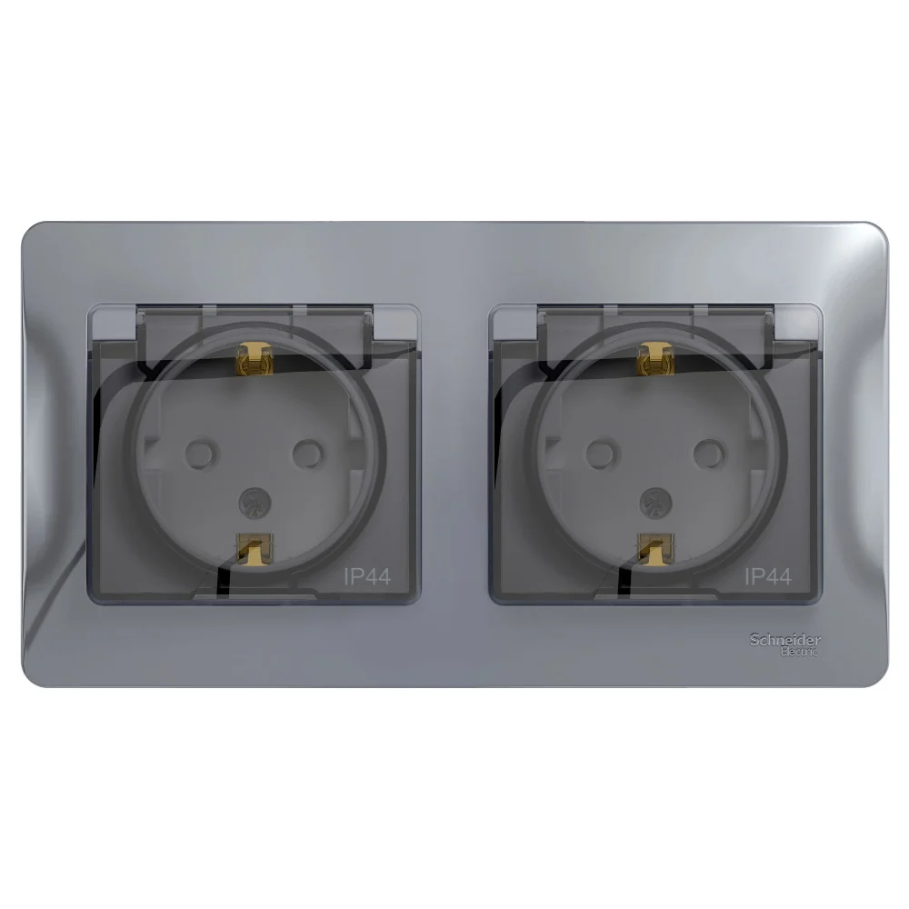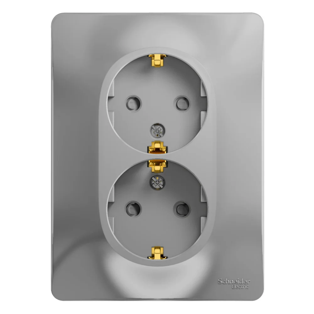 Systeme Electric Glossa Алюминий Розетка 2-ая с/з, со шторками, в сборе, IP44