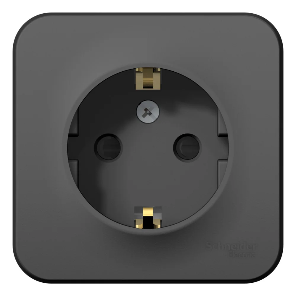 Розетка Systeme Electric (ранее Schneider Electric) BLANCA (антрацит, открытой установки) одноместная, с заземлением и шторками предназначена для сетей до 250В, на ток до 16А. Шторки открываются только при одновременном равномерном давлении в оба отверстия и препятствуют проникновению посторонних предметов. Они обеспечат дополнительную безопасность в доме, где есть дети.