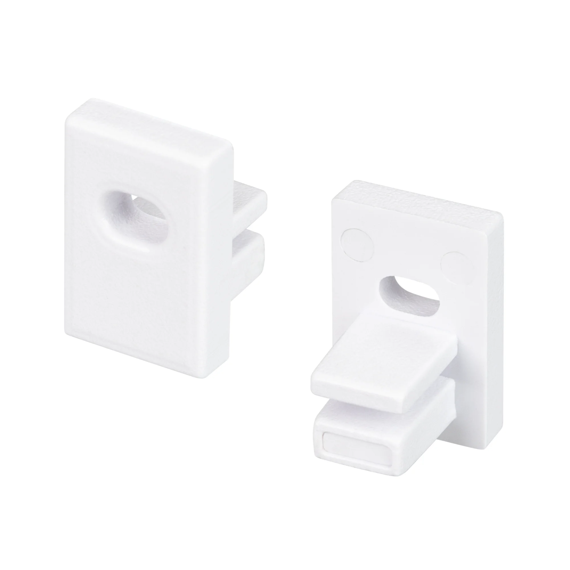 Пара заглушек белого цвета с отверстием для профиля SL-MINI-8-H12. В комплекте 2 заглушки. Цена за комплект.