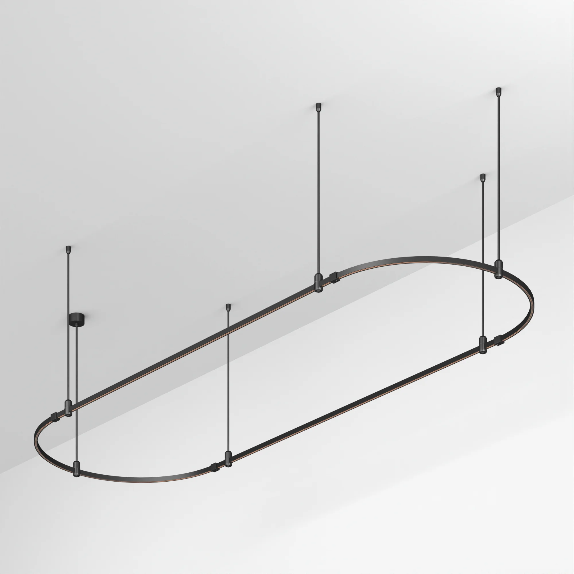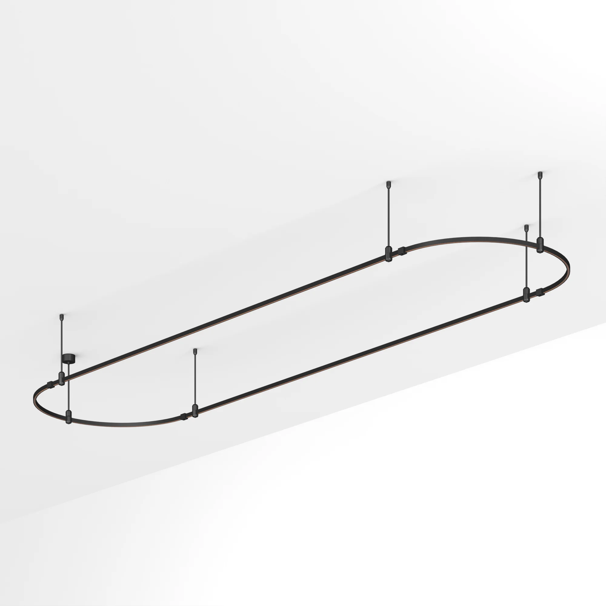Подвесная конструкция APRIORI, форма овал. В комплекте треки с аксессуарами и гибкими подвесами. DC48V. Материал алюминий, цвет черный. Размер ДxШxВ: 4000x1000x22мм. Светильники и источники питания приобретаются отдельно.