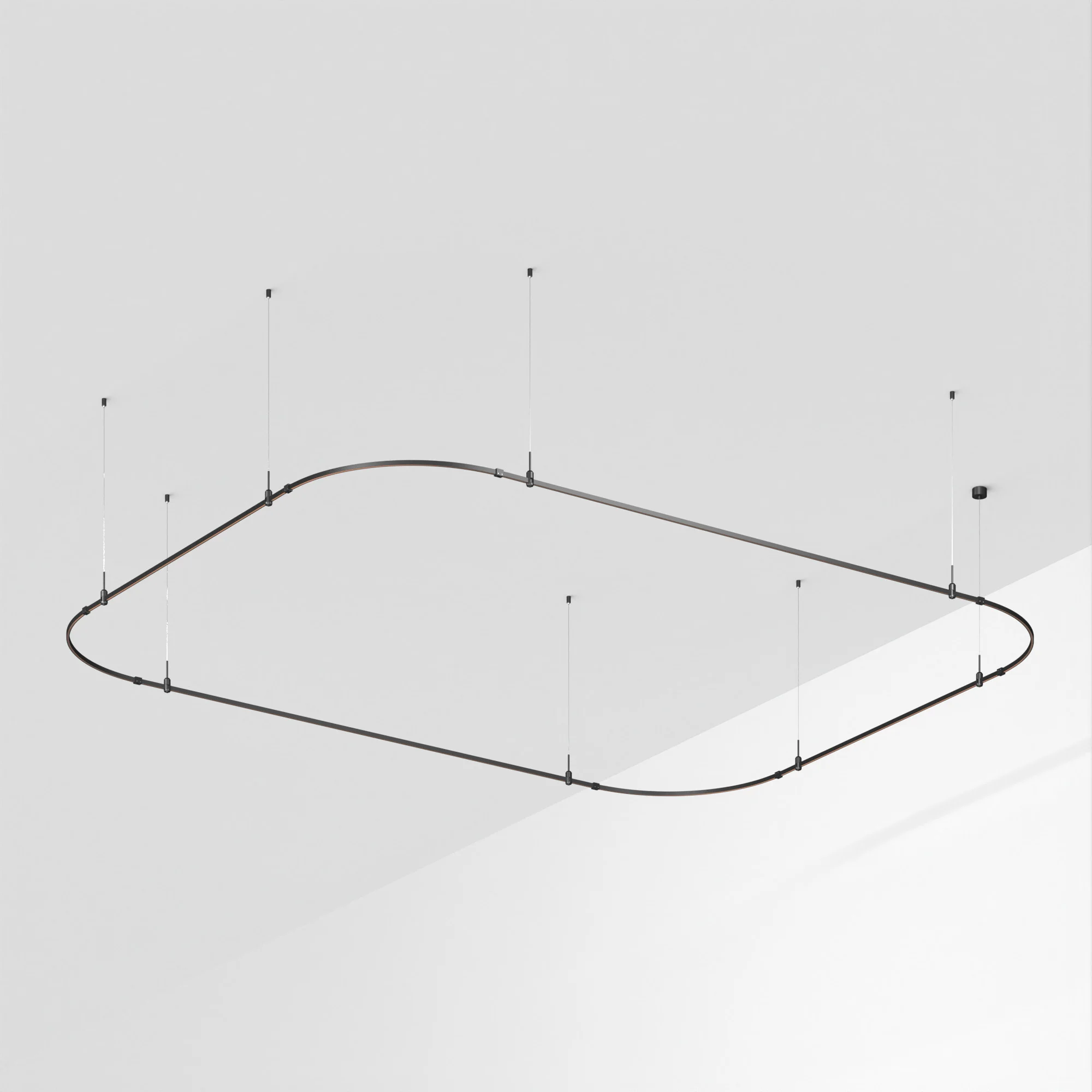 Подвесная конструкция APRIORI, форма закруглённый прямоугольник. В комплекте треки с аксессуарами и жесткими подвесами длиной 800мм. DC48V. Материал алюминий, цвет черный. Размер ДxШxВ: 4500x3500x22мм. Светильники и источники питания приобретаются отдельно.