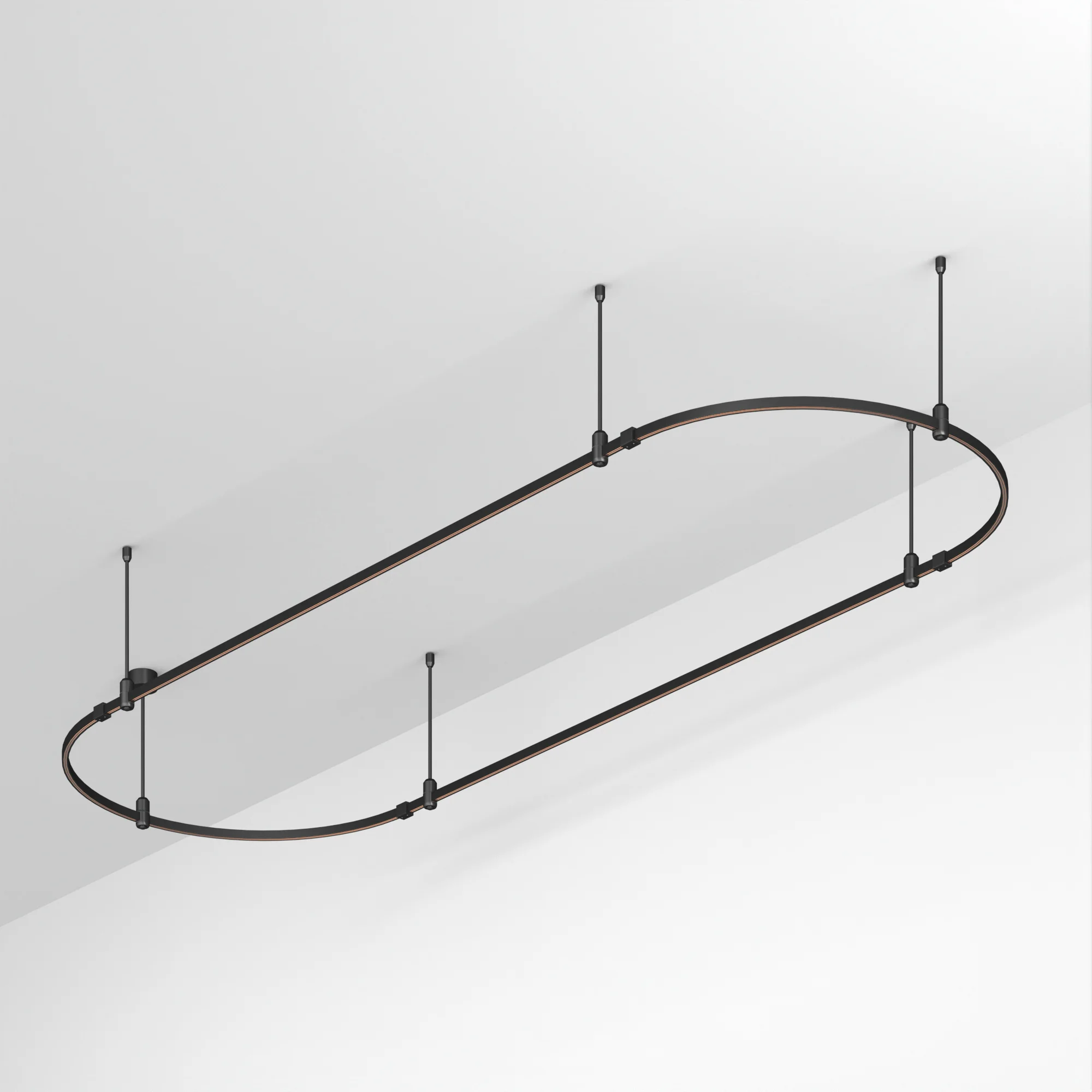 Подвесная конструкция APRIORI, форма овал. В комплекте треки с аксессуарами и жесткими подвесами длиной 200мм. DC48V. Материал алюминий, цвет черный. Размер ДxШxВ: 3000x1000x22мм. Светильники и источники питания приобретаются отдельно.