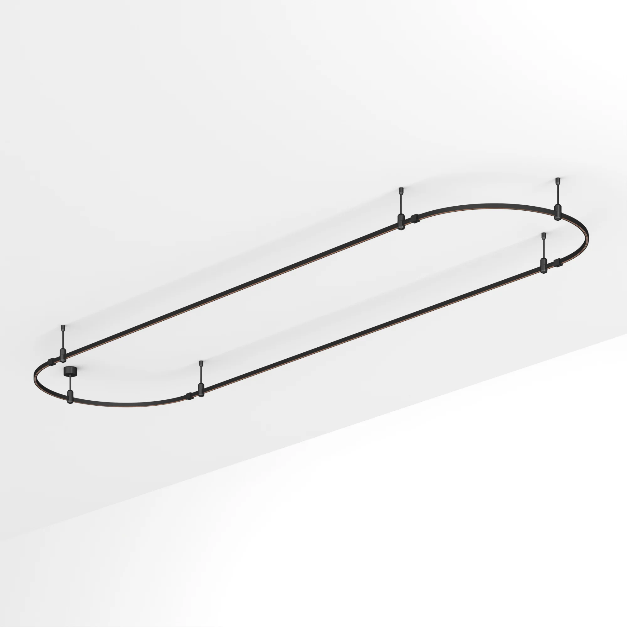 Подвесная конструкция APRIORI, форма овал. В комплекте треки с аксессуарами и жесткими подвесами длиной 200мм. DC48V. Материал алюминий, цвет черный. Размер ДxШxВ: 4000x1000x22мм. Светильники и источники питания приобретаются отдельно.