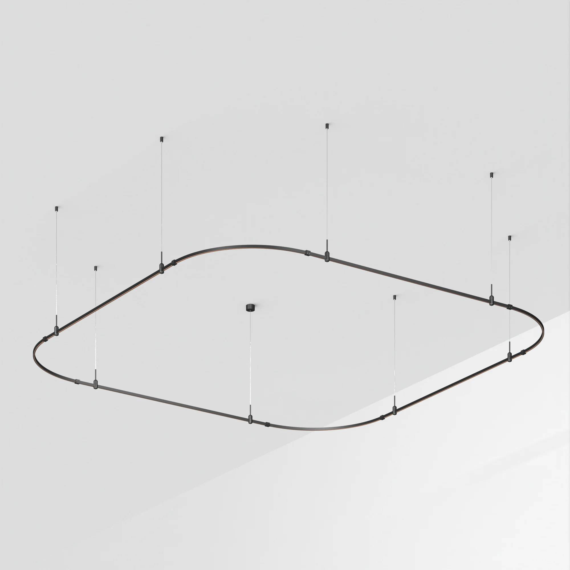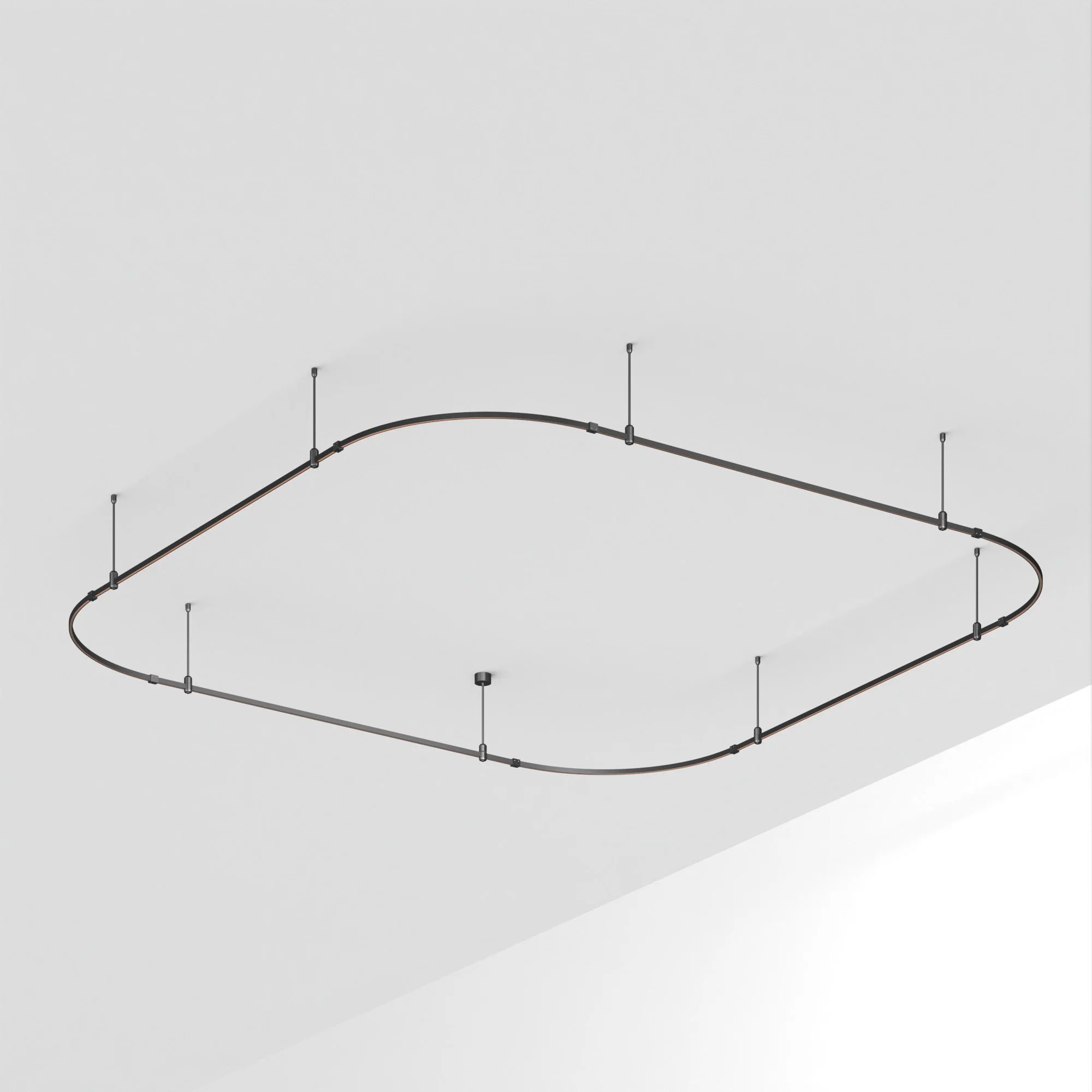 Подвесная конструкция APRIORI, форма закруглённый квадрат. В комплекте треки с аксессуарами и гибкими подвесами. DC48V. Материал алюминий, цвет черный. Размер ДxШxВ: 3500x3500x22мм. Светильники и источники питания приобретаются отдельно.
