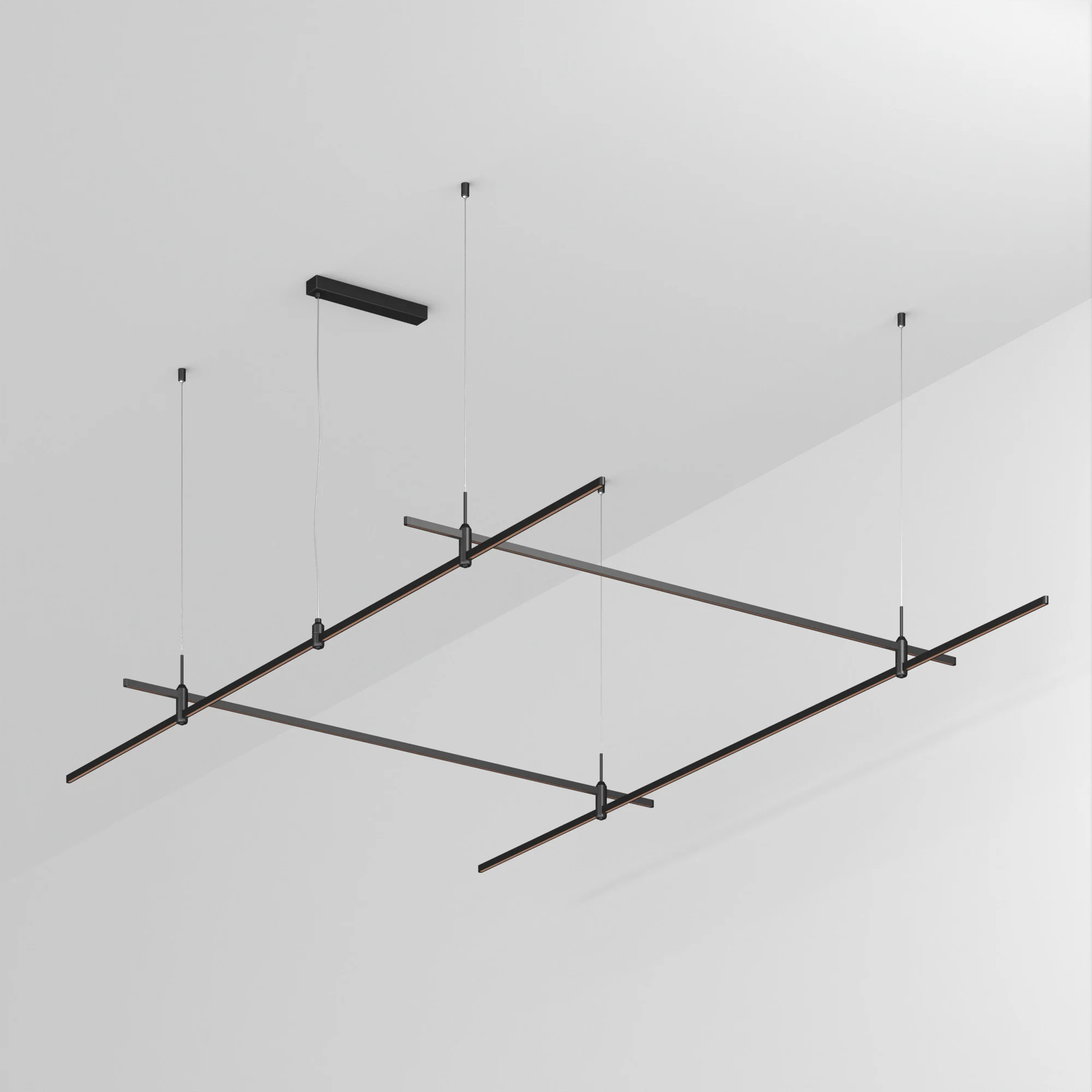 Подвесная конструкция APRIORI, форма прямоугольник. В комплекте треки с аксессуарами и жесткими подвесами длиной 800мм. DC48V. Материал алюминий, цвет черный. Размер ДxШxВ: 3000x2000x22мм. Светильники и источники питания приобретаются отдельно.