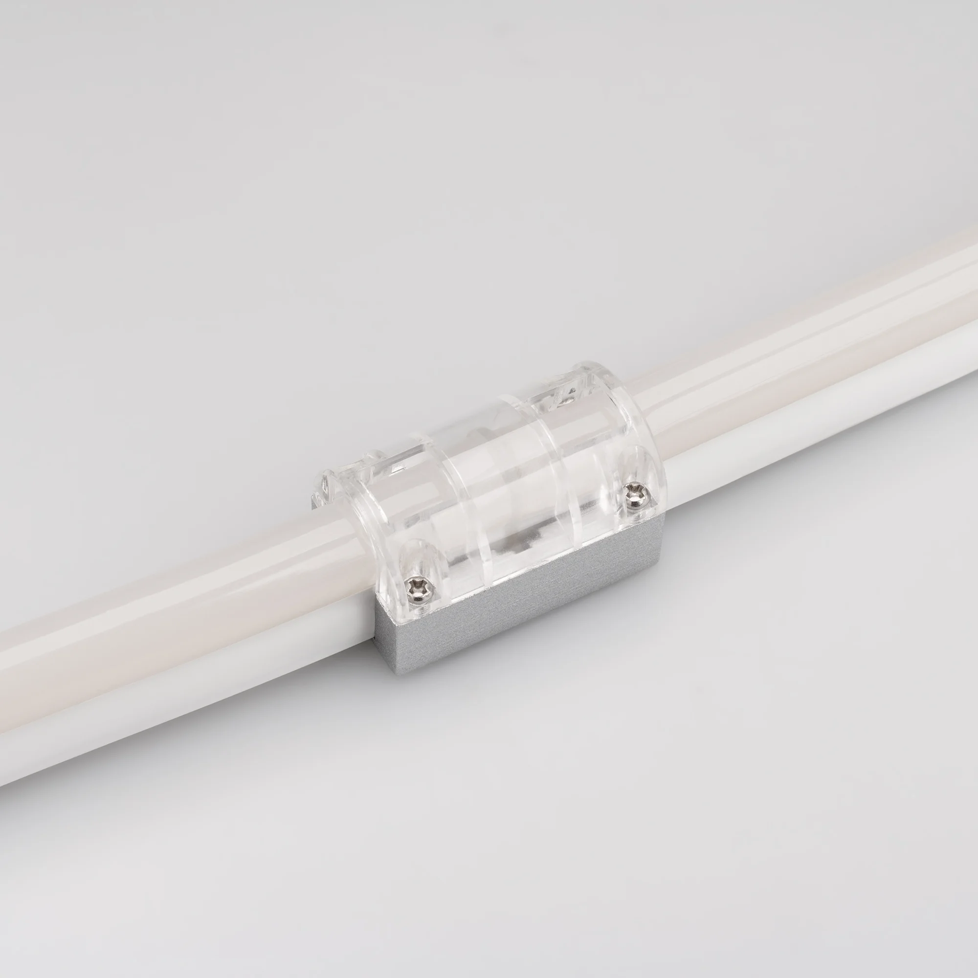 Прямой 2-х контактный соединитель для гибкого неона сечения 26x15mm серии NEON. Обеспечивает непрерывное соединение и сплошную линию свечения без разрывов. Требуется доп.герметизация для соединения IP65. Материал-алюминий, прозрачный пластик. Размеры ДхШ: 50х30мм. Цена за 1шт. Кратность заказа поставщику: 10 шт.