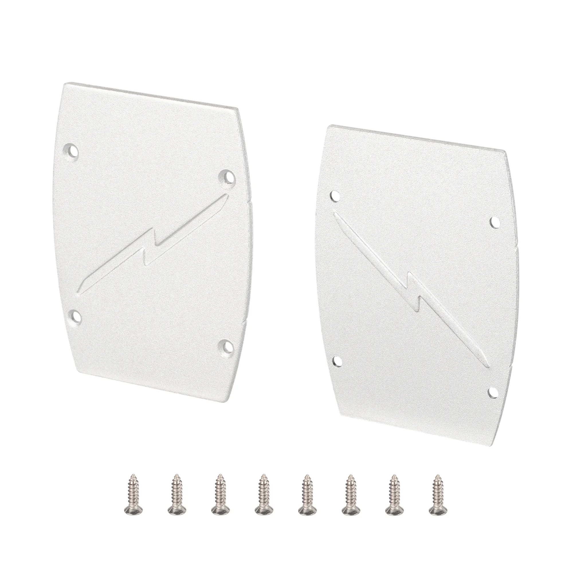 Серебристые глухие заглушки (комплект 2 шт.) для профиля HR-FACADE. Материал — сталь. Цена за комплект. Минимальный заказ 10 комплектов.