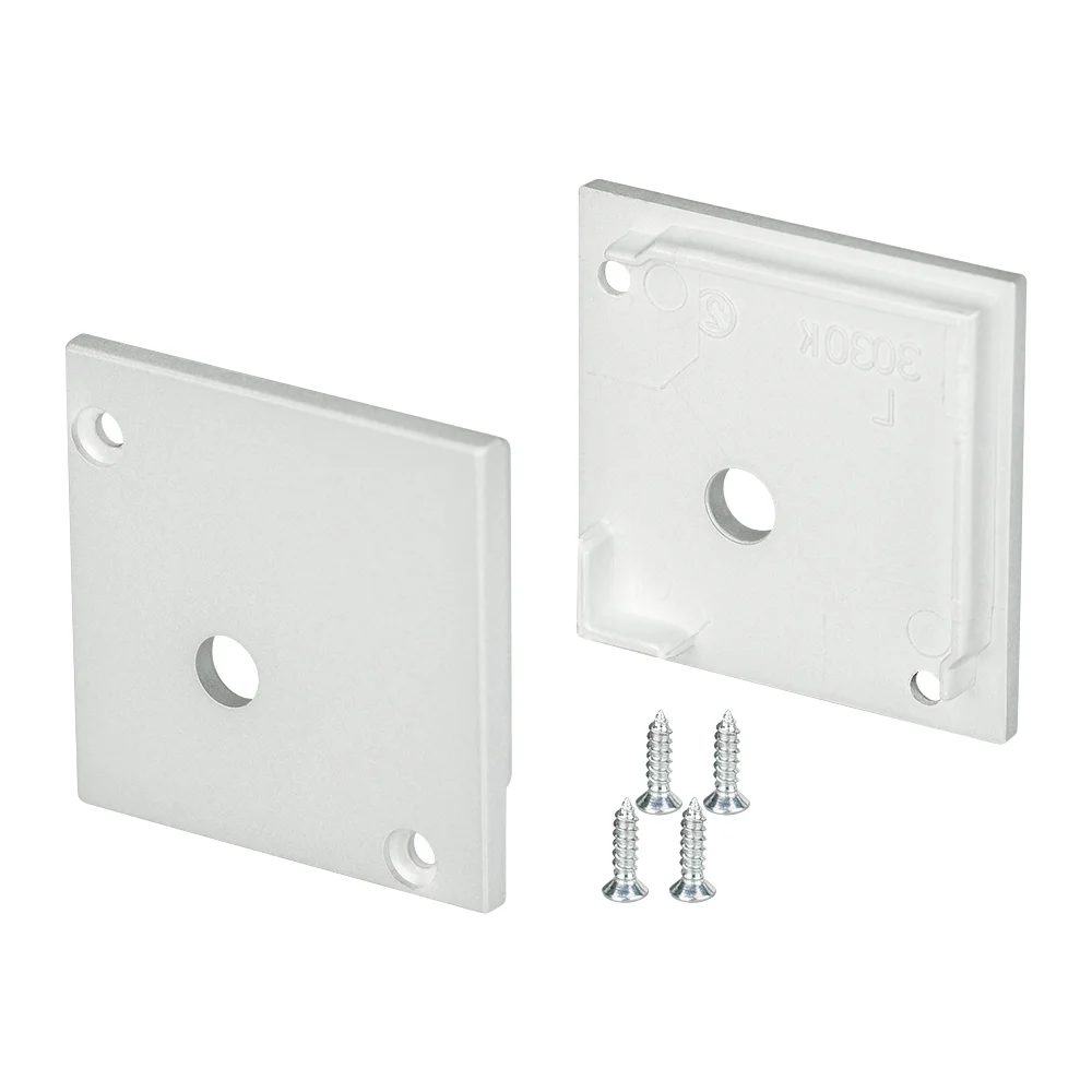 Пара заглушек (с отверстием) для профиля SL-KANT-H30 с квадратным экраном. В комплекте 2 заглушки, 4 шурупа. Цена за комплект.