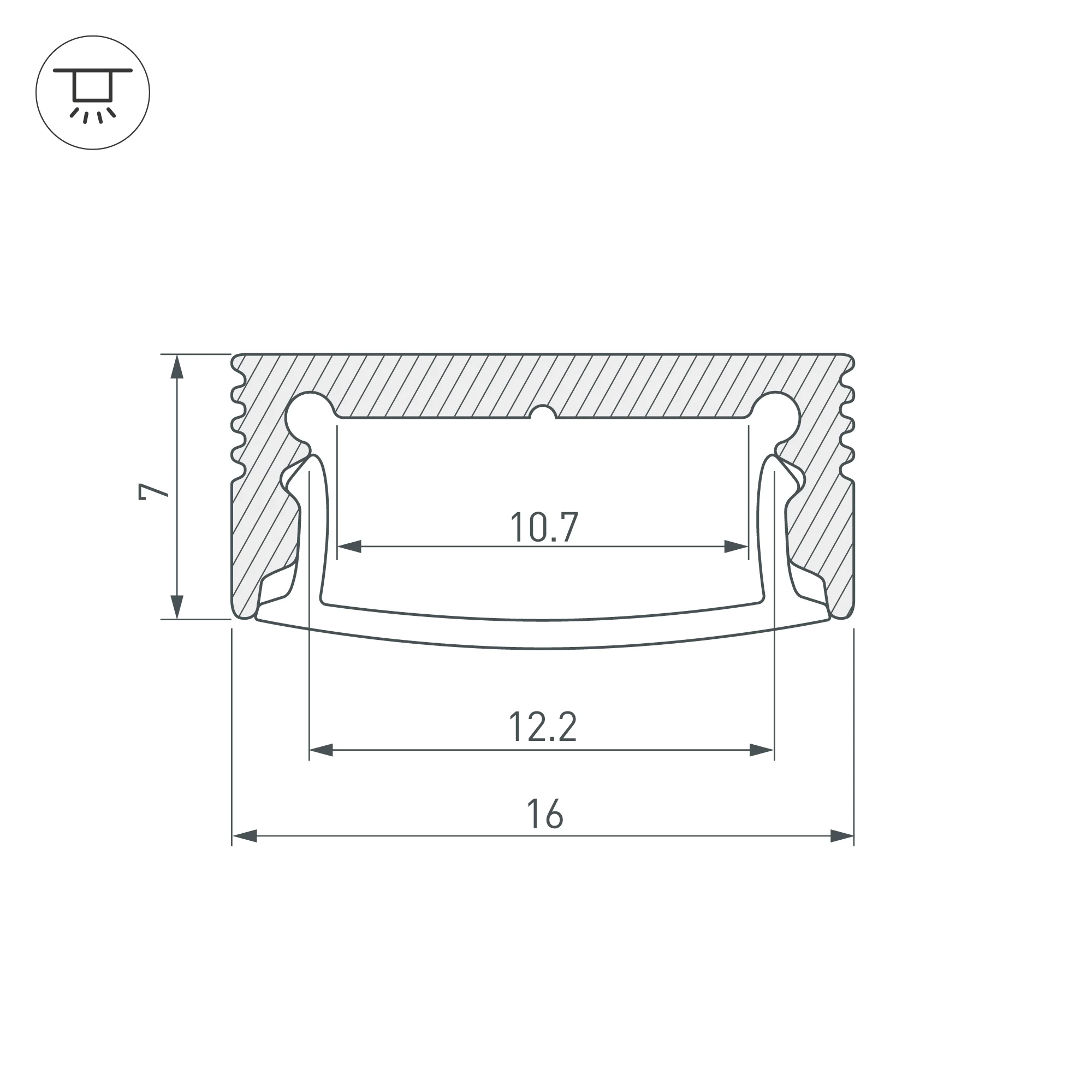 Комплект с экраном, в картонной коробке. Алюминиевый анодированный профиль для светодиодных лент и линеек. Габаритные размеры (L×W×H): 2000x16x7 мм. Ширина площадки для ленты 10 мм. Цена за комплект: профиль — 2 м, экран — 2 м, глухая заглушка — 2 шт., держатель — 4 шт.