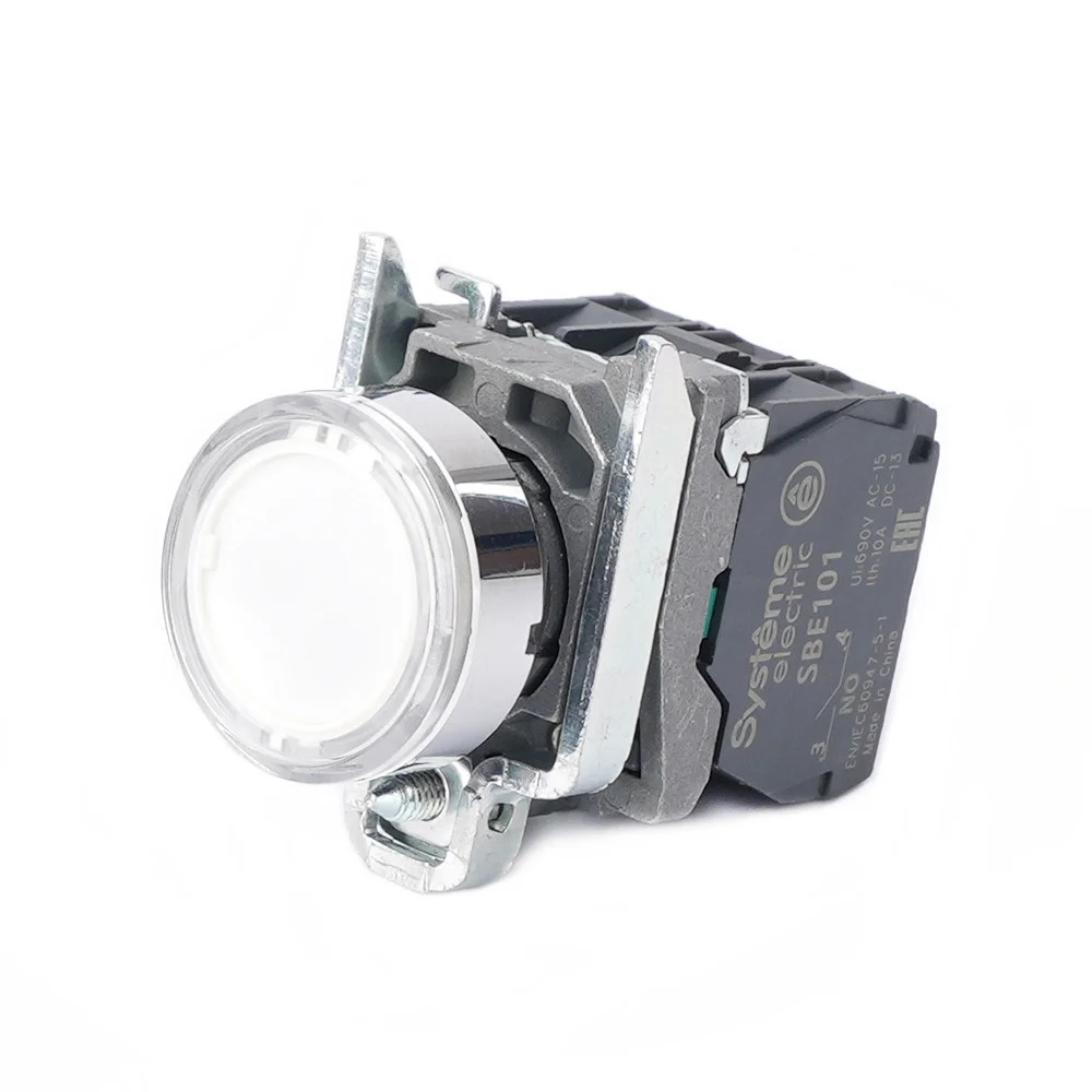 Кнопка серии SB4 с подсветкой, в сборе, модульная, для монтажа в отверстия диаметром 22мм, белая, в металлическом корпусе, IP66. Напряжение питания: 24ВAC/DC Количество контактов: 1НО+1НЗ. Устройства управления и сигнализации SystemeSig находят широкое применение в технологическом оборудовании и машинах, шкафах распределения и управления, промышленных предприятиях, объектах инфраструктуры, гражданском строительстве.