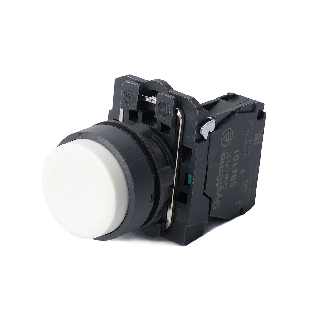 Кнопка серии SB5 в сборе, модульная, для монтажа в отверстия диаметром 22 мм, выступающая, белая, с возвратом, в пластиковом корпусе, IP66. Колличество контактов: 1НО. Устройства управления и сигнализации SystemeSig находят широкое применение в технологическом оборудовании и машинах, шкафах распределения и управления, промышленных предприятиях, объектах инфраструктуры, гражданском строительстве.