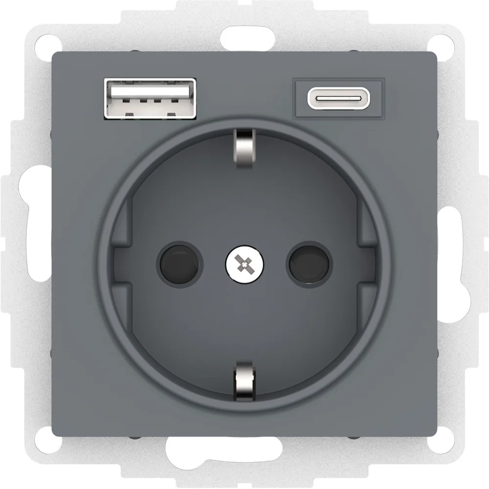Systeme Electric AtlasDesign Грифель Розетка 16А с USB A+C (5В/2,4А/3 А, 2х5В/1,5А), мех
