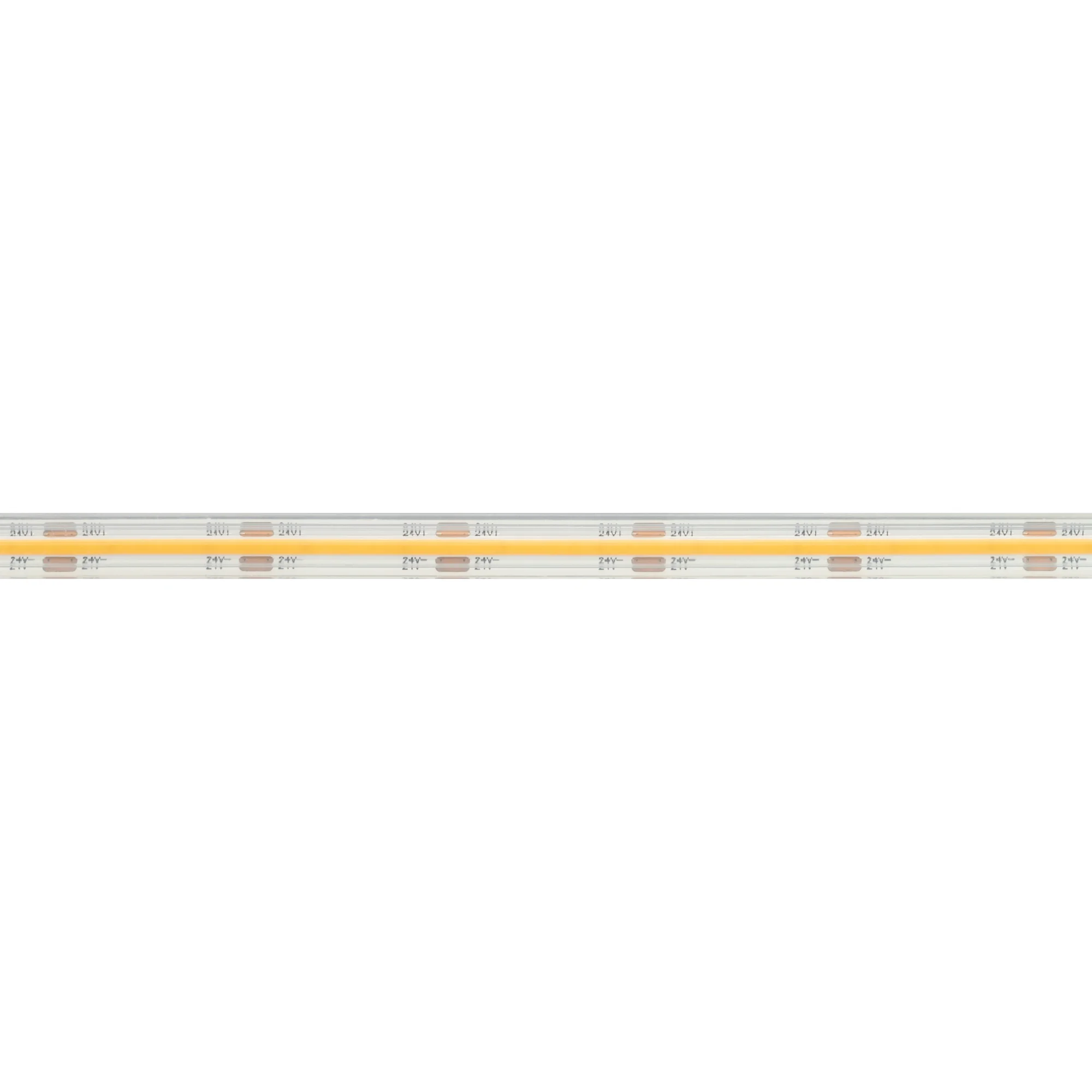 Светодиодная герметичная лента сплошного свечения COB серии X544, IP65 (нанопокрытие). Светодиоды CSP, 544 шт/м, белая плата шириной 8 мм, скотч 3M. Цвет свечения ТЕПЛЫЙ 2700K, индекс цветопередачи CRI>90, угол 140°. Питание 24 В, мощность 11.5 Вт/м. Размеры 5000х8х1.6 мм. Мин. отрезок 29.41. Цена за 1 м. Обязательна установка на профиль. Кратность заказа поставщику: 5 м.