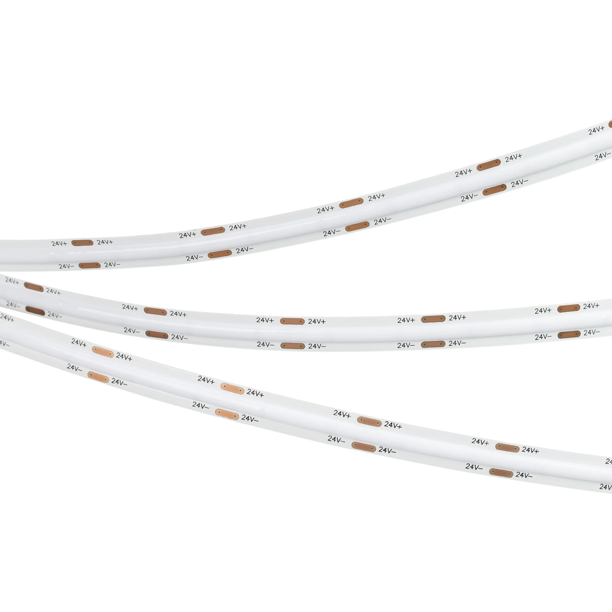 Светодиодная лента сплошного свечения COB серии X1088. Светодиоды CSP, 1088 шт/м, белая плата шириной 12 мм, скотч 3M. Цвет ТЕПЛЫЙ 3500K, индекс цветопередачи CRI>90, угол 140°. Питание 24 В, мощность 22 Вт/м (110 Вт на 5м). Размеры 5000х12х1.6 мм. Мин.отрезок 14.7 мм. Цена за 1 м. Обязательна установка на профиль. Кратность заказа поставщику: 5 м.