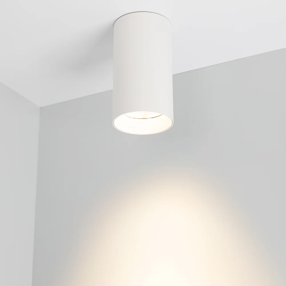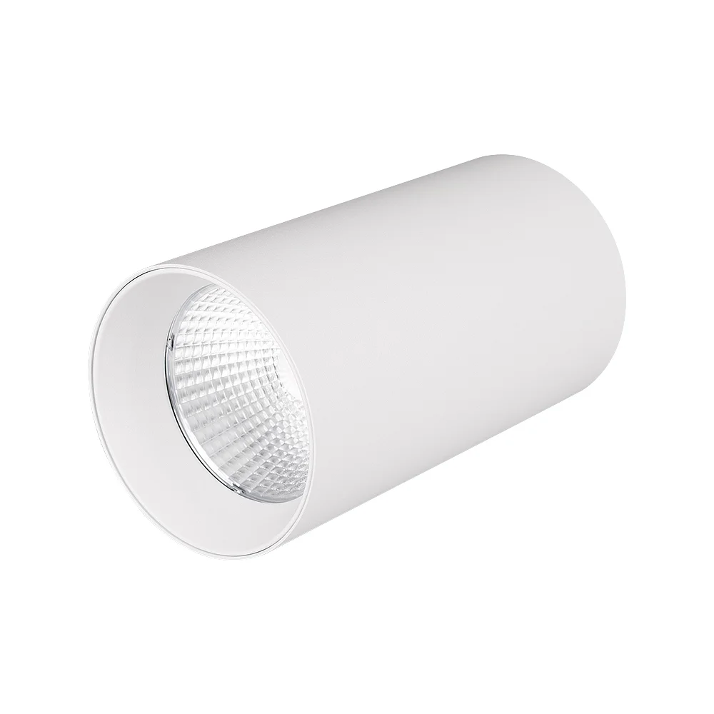 Накладной светильник 15Вт, белый круглый корпус, белая вставка, металл. Цвет ТЕПЛЫЙ БЕЛЫЙ 3000K, св.поток 1100лм, CRI(Ra)>80, угол 40°. Размер Ø85×155мм. Встроенный драйвер PRI:220-240VAC, SEC:DC 500mA 23-36V 15Вт.
