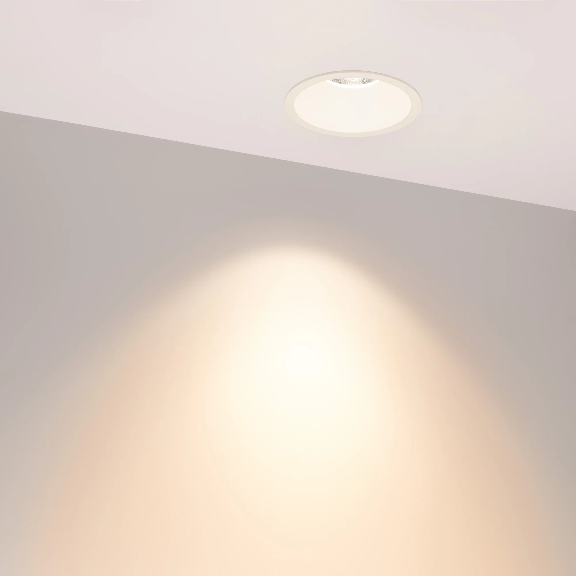Встраиваемый светильник даунлайт. Мощность 10 Вт, св. поток 980 лм, 98 лм/Вт, дневной 4000 K, CRI>90, угол 50°, напряжение питания 230 В. Белый круглый корпус из алюминия, степень защиты IP20. Размер: диаметр 82 мм, высота 53 мм. Монтаж встраиваемый, установочное отверстие: диаметр 75 мм. UGR<14. Драйвер 30-42 В, 250 мА, пульсация <2%.