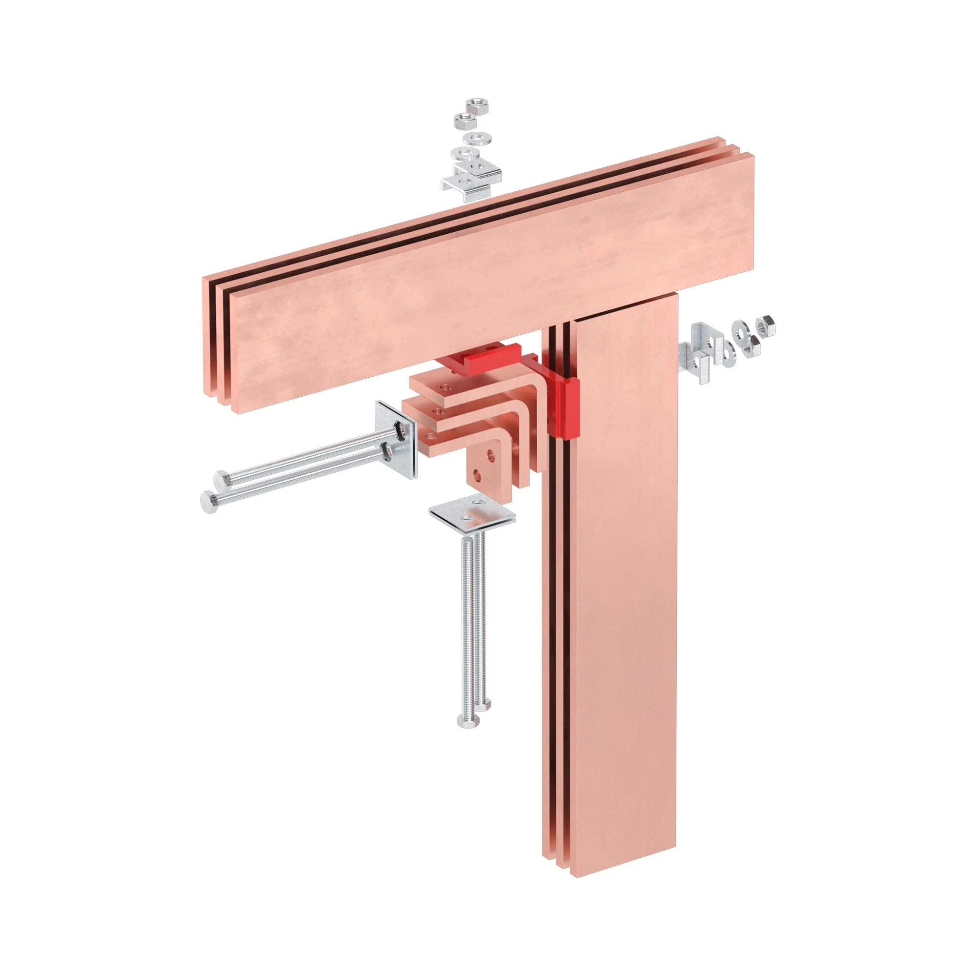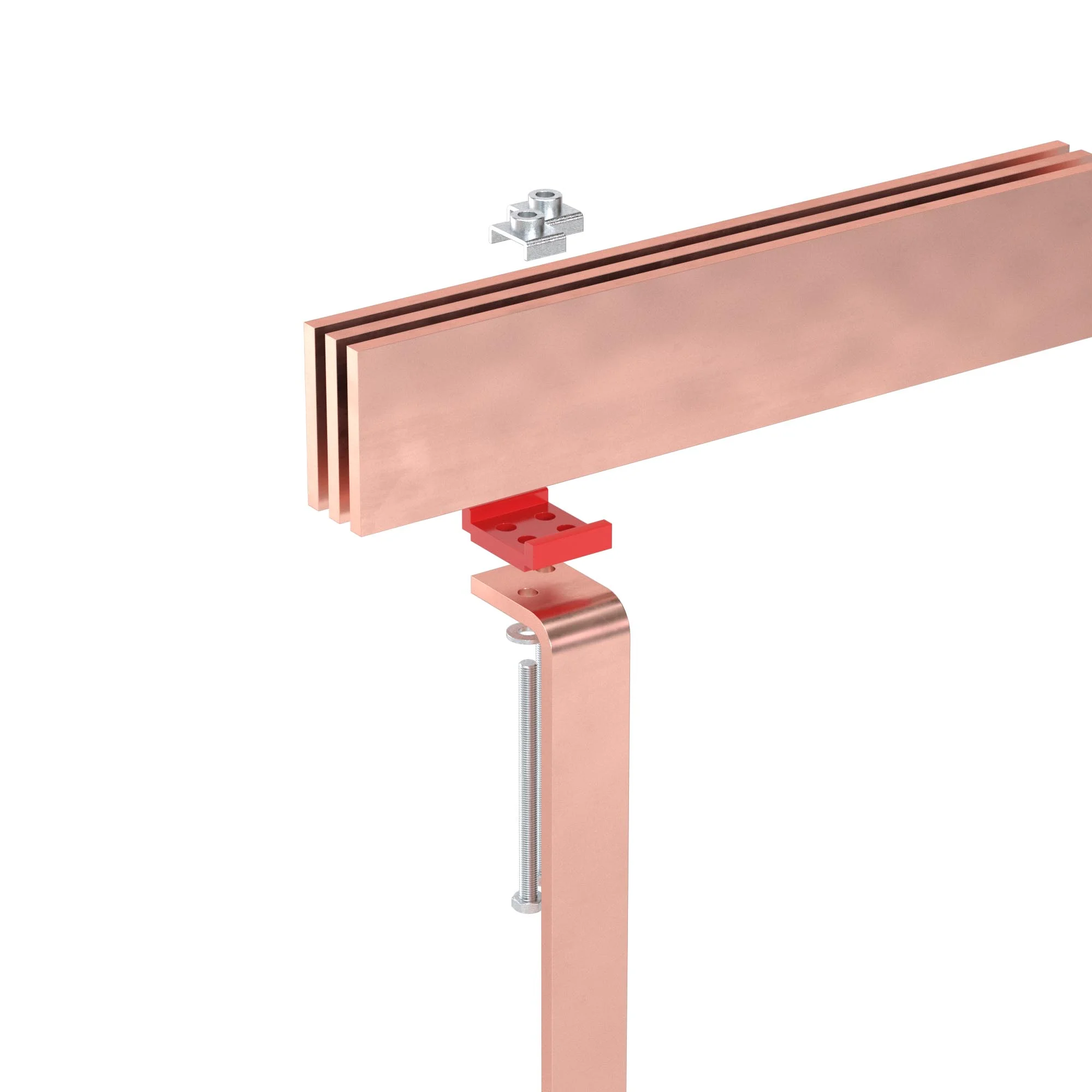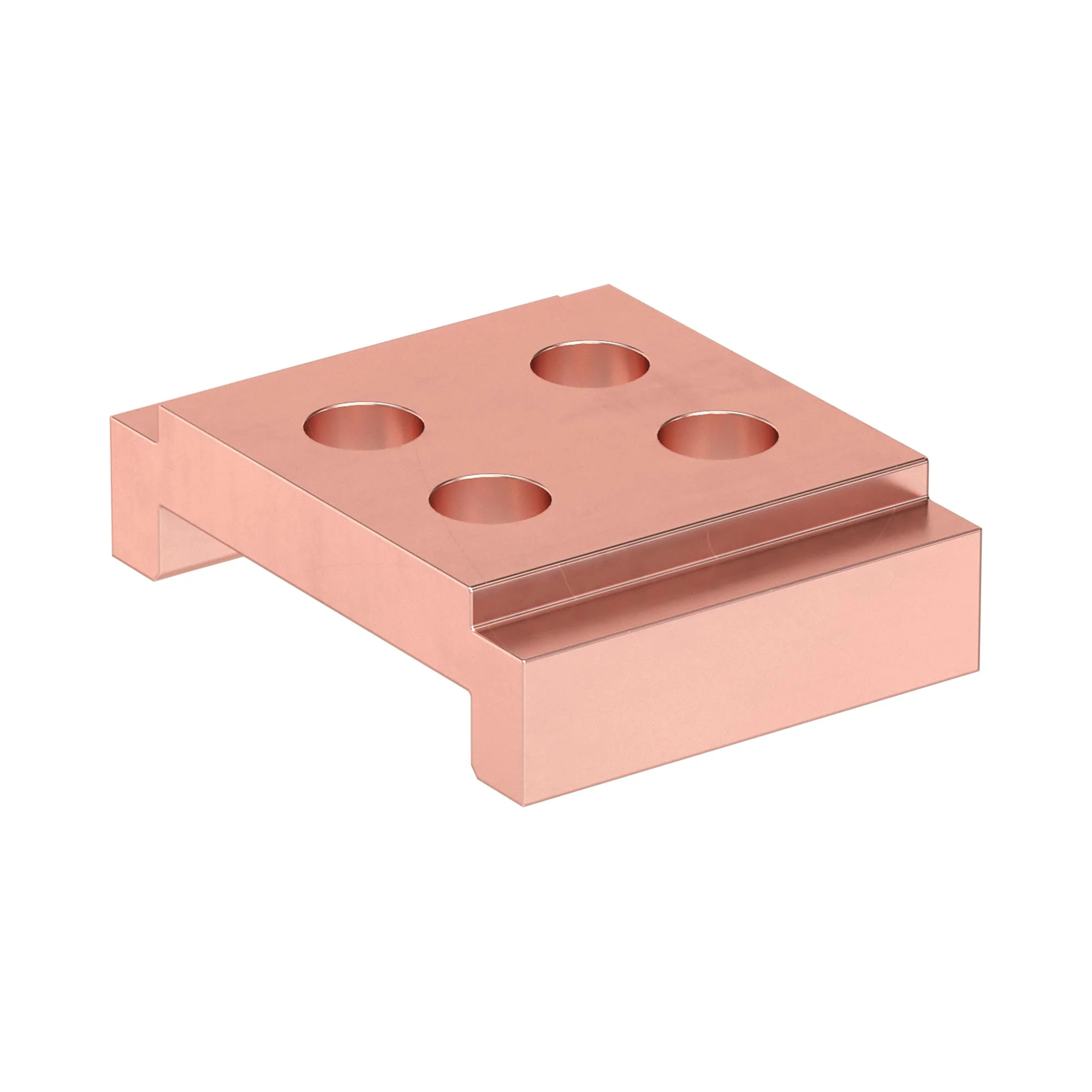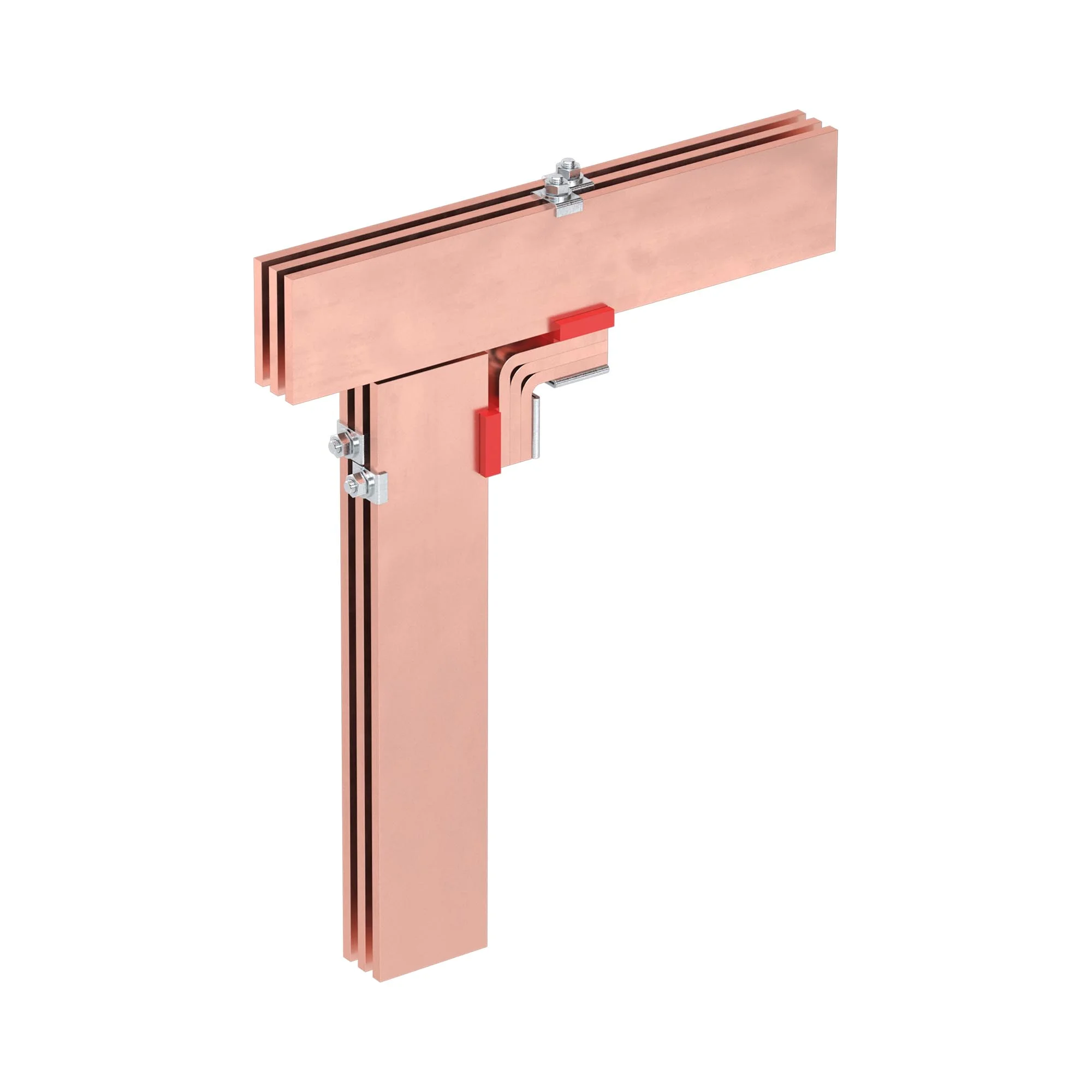 Струбцина медная 50 мм, 3 шины на фазу. Обеспечивает прохождение электрического тока в местах соединения шин. Применяется для подключения автоматических выключателей шиной шириной 40-50 мм а также для соединения горизонтальных и вертикальных шин 3-3 и 3-2