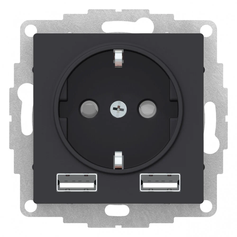 Systeme Electric AtlasDesign Карбон SO + USB Розетка A+A, 5В/2,4А, 2х5В/1,2 А, механизм
