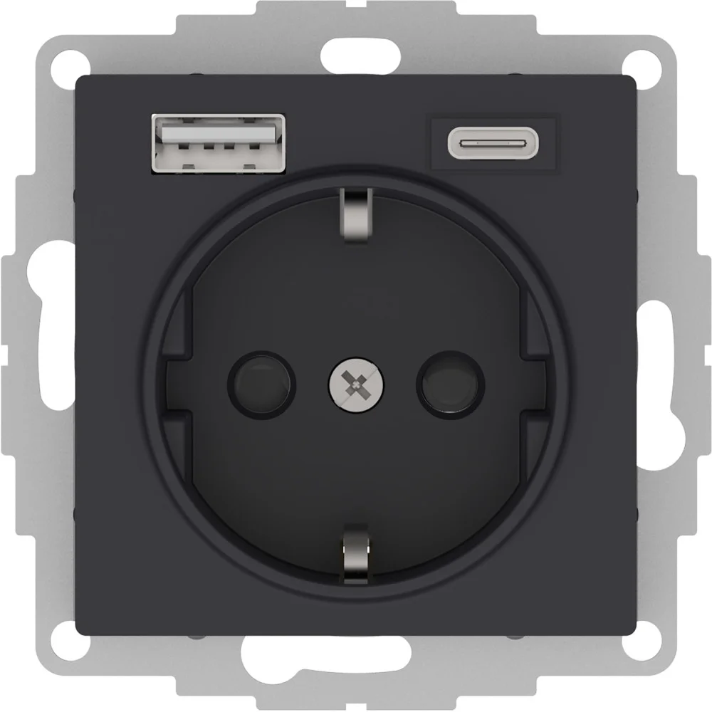 Systeme Electric AtlasDesign Карбон Розетка 16А с USB A+C (5В/2,4А/3 А, 2х5В/1,5А), мех
