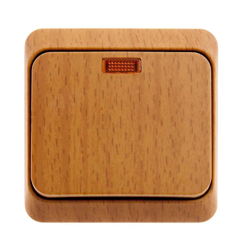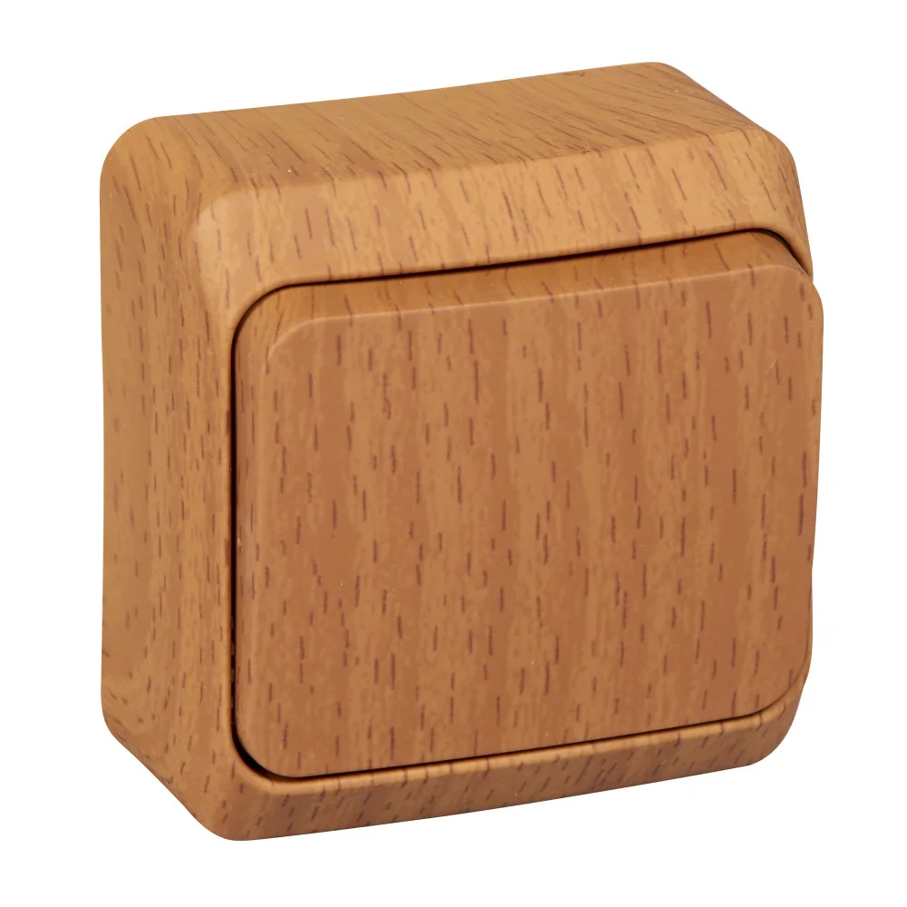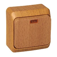 Выключатель Systeme Electric (ранее Schneider Electric) ЭТЮД (бук, открытой установки) одноклавишный предназначен для применения в сетях до 250В, на ток до 10А. Наличие подсветки делает его легко находимым при отсутствии освещения. Выключатель подходит для большинства типов ламп, включая люминесцентные. Изделия цвета Бук обладают уникальным рисунком, напоминающим древесный сруб. Сделано в России.