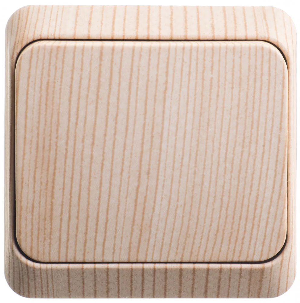 Выключатель Systeme Electric (ранее Schneider Electric) ЭТЮД (сосна, открытой установки) одноклавишный предназначен для применения в сетях до 250В, на ток до 10А. Выключатель подходит для большинства типов ламп, включая люминесцентные. Изделия цвета Сосна обладают уникальным рисунком, напоминающим древесный сруб. Он прост в установке и удобен в применении. Сделано в России.