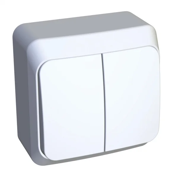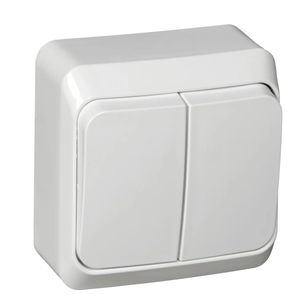 Выключатель Systeme Electric (ранее Schneider Electric) ЭТЮД (белый, открытой установки) двухклавишный предназначен для применения в сетях до 250В, на ток до 10А. Две клавиши позволяют управлять двумя источниками света с одной точки. Он прост в установке и удобен применении. Сделано в России.