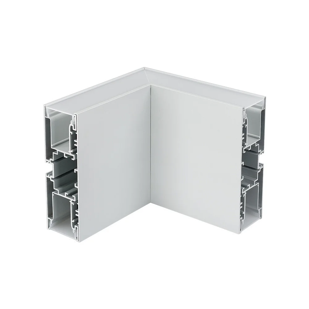 Состыковочный угол в сборе, для соединения 2-х профилей S2-WALL-X2-H128 под углом 90°, в комплекте с экраном. Накладная панель снаружи угла. В комплекте матовый экран с выпуском 20мм для подрезки, соединители. Длина внешней стороны угла 150мм. Кратность заказа поставщику: 2 шт.