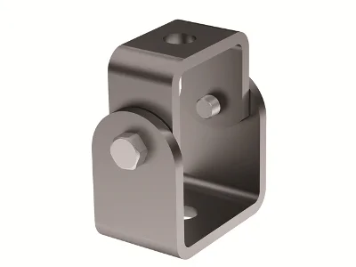 Шарнир BSV1012 применяется для установки полиамидных держателей IBHR на консоли под произвольным углом. Также может использоваться для организации распорки при помощи шпильки. Два отверстия под метизы М12. Толщина стали 5 мм.