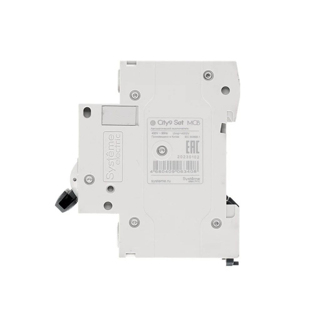 Автоматический выключатель серии City9 Set Systeme Electric, 4-полюсный, номинальный ток 63 А, характеристика С, Icn = 6 кА. Применяется в электрических сетях напряжением 400 В. Предназначен для защиты от перегрузок и токов короткого замыкания. Оснащен механизмом «мгновенной коммутации». Ударопрочный корпус из специального пластика с 6 металлическими заклепками. Безопасные клеммы исключают попадание кабелей в заклеммное пространство.