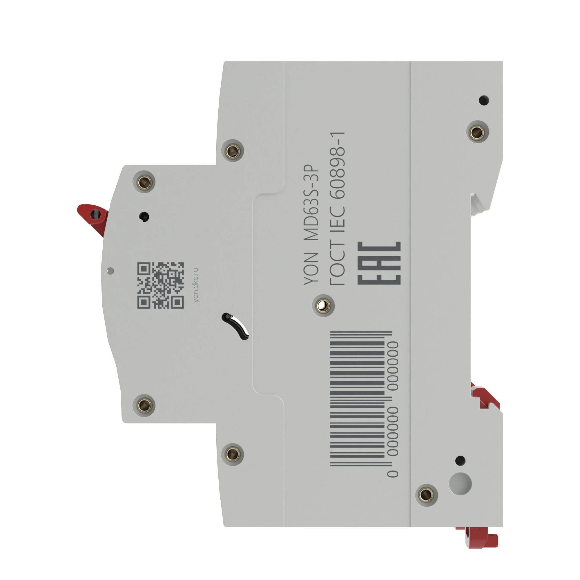 Модульный автоматический выключатель «YON MAX» на 3 полюса с номинальным током 63 А, характеристикой D и отлючающей способностью 4,5 кА. Применяется в сетях с напряжением 400 В. Предназначен для защиты от токов перегрузки и короткого замыкания. Модульное оборудование «YON MAX» используется при строительстве домов, многоквартирных жилых комплексов, торговых центров, коттеджей и объектов социальной инфраструктуры.