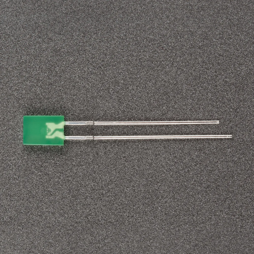 Поставка под заказ от 5000 шт. Выводной прямоугольный светодиод, 2×5×7 мм, зеленая диффузная линза. Цвет свечения зеленый (570 нм). Угол излучения 100-120°. Сила света Iv=400-700 мкд при If=20 мА. VF=2.9-3.4 В. Рекомендуемый постоянный рабочий ток <16-17 мА. Кратность заказа поставщику: 500 шт.