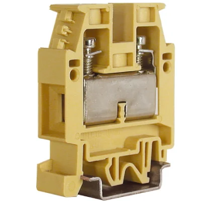 Клемма для заземления с винтовым зажимом предназначена для соединения двух проводников. Монтаж на DIN-рейку OMEGA. Температура эксплуатации от -40 до +105°C. Корпус выполнен из ПА 6.6 с классом горючести V0 UL-94. Имеет электрический контакт с DIN-рейкой. Желто-зеленый цвет, 2 точки подключения, 16 мм². 1 канал винтовых перемычек. Габариты (В×Ш×Г) 54×42,5×12,2 мм.