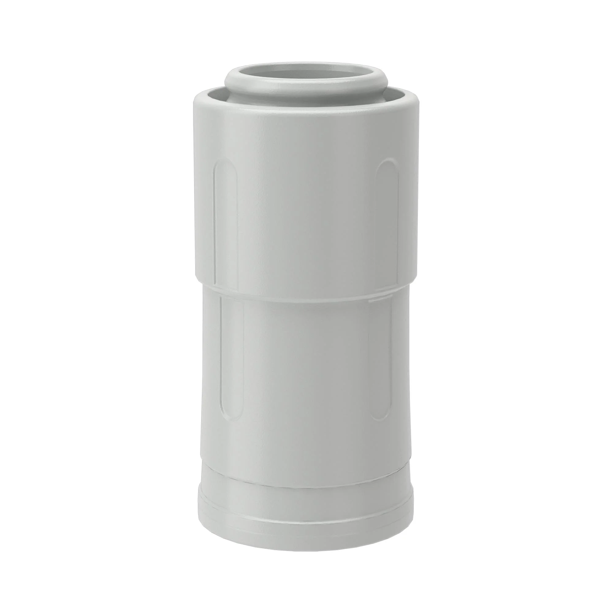 Переходник «Армированная труба — жесткая труба» для герметичного соединения жестких гладких и армированных труб. Диаметр — 25 мм. Материал: полипропилен/ резина. Степень пыле- и влагозащиты IP67. Цвет серый RAL 7035. Элемент системы может эксплуатироваться при широком диапазоне температур: от –25°С до +60 °С.