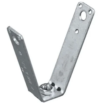 Крепление для профнастила имеет V-образную форму. Это изделие предназначено для подвешивания монтажных систем и элементов к волне профнастила. Для фиксации применяются шпильки М10.