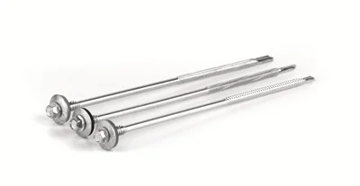 Самосверлящий самонарезающийся винт с шайбой используется для крепления к сэндвич-панелям несущих конструкций и молниеотводных полос. Длина винта — 105 мм.