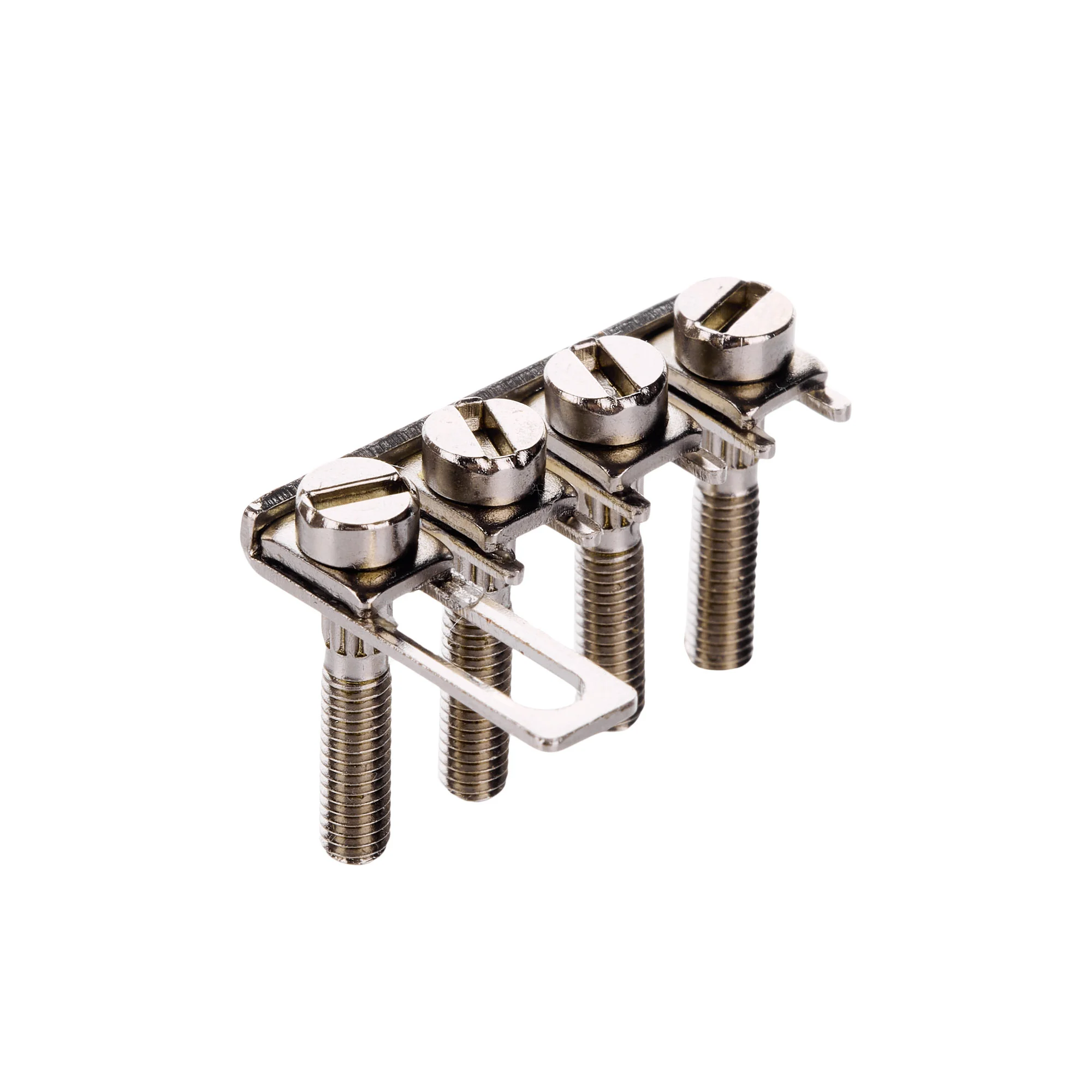 Перемычка сдвижная (справа) винтовая, четырехполюсная для быстрого и надежного перемыкания измерительных винтовых клемм TUR-6-RTK-S. Возможен пропуск при соединении клемм за счет выкручивания винтов.