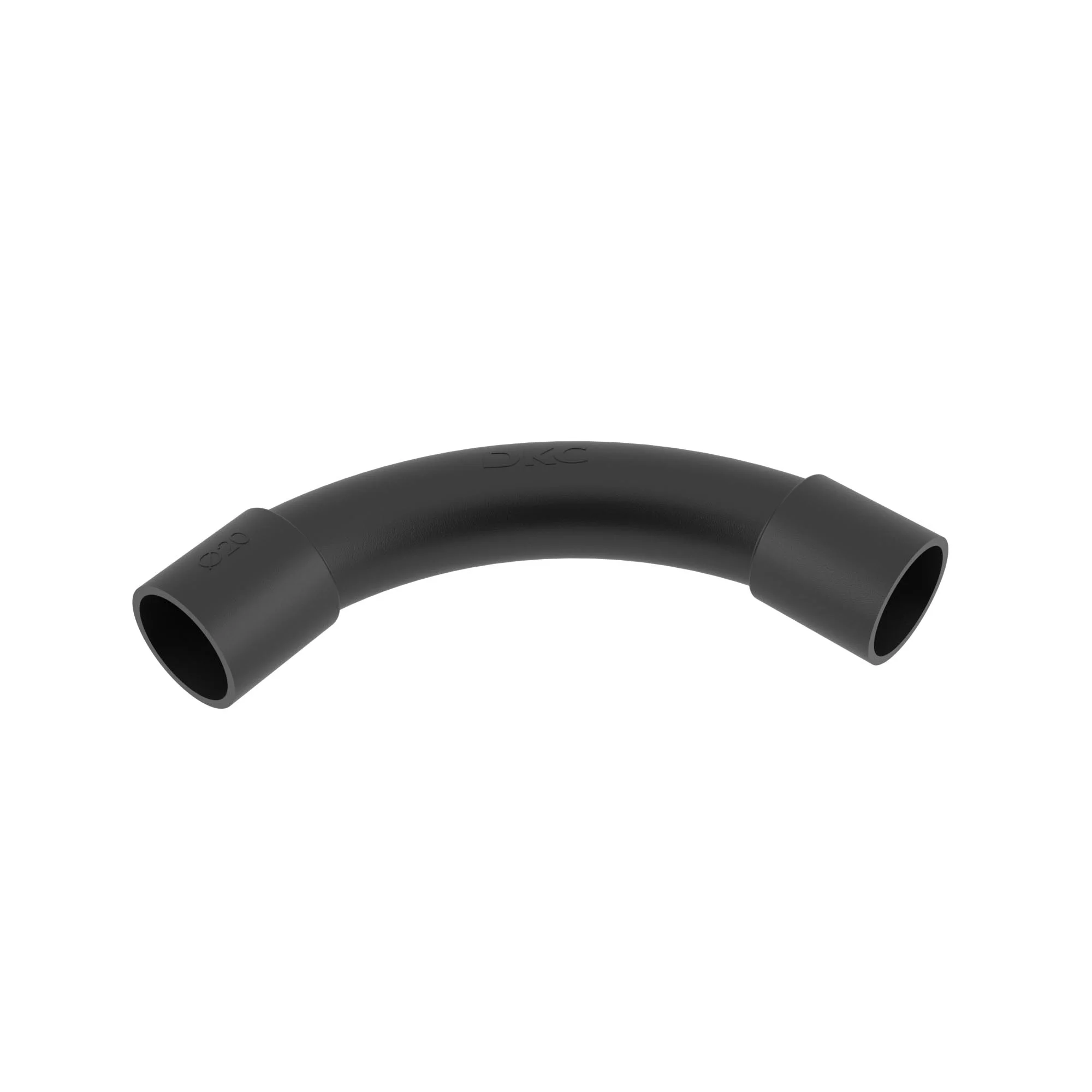 Поворот (угол) на 90 градусов – элемент кабеленесущей системы, который предназначен для соединения труб одинакового диаметра под прямым углом. Применение углов позволяет строить сложные трассы. Степень пыле- и влагозащиты поворота — IP 40. Диаметр – 20 мм. Материал – полипропилен. Цвет: черный. Температура эксплуатации аксессуара: от –25 °С до +60 °С.